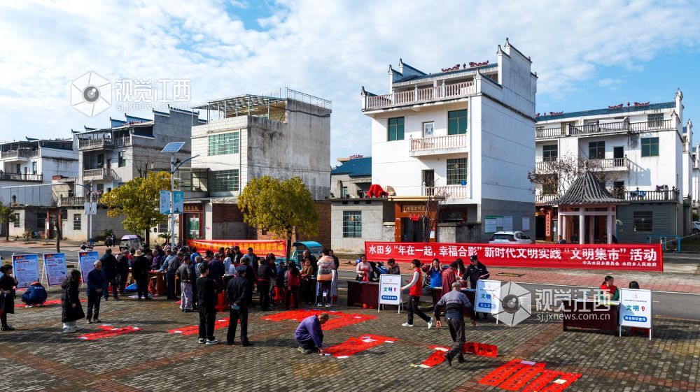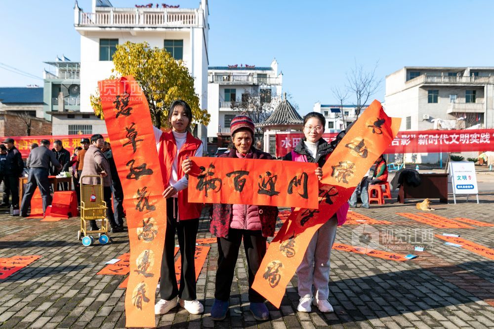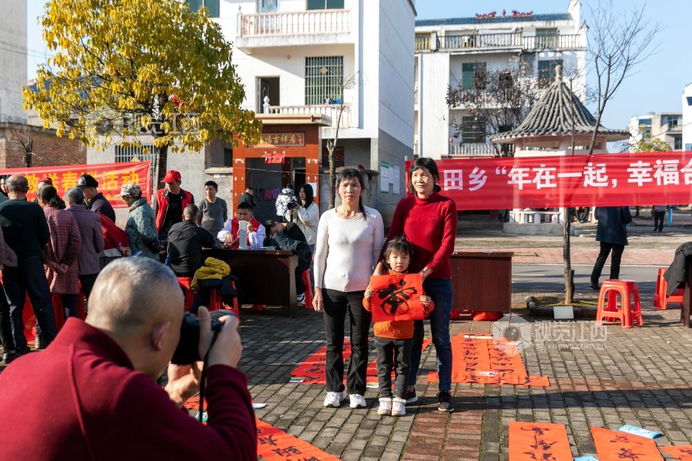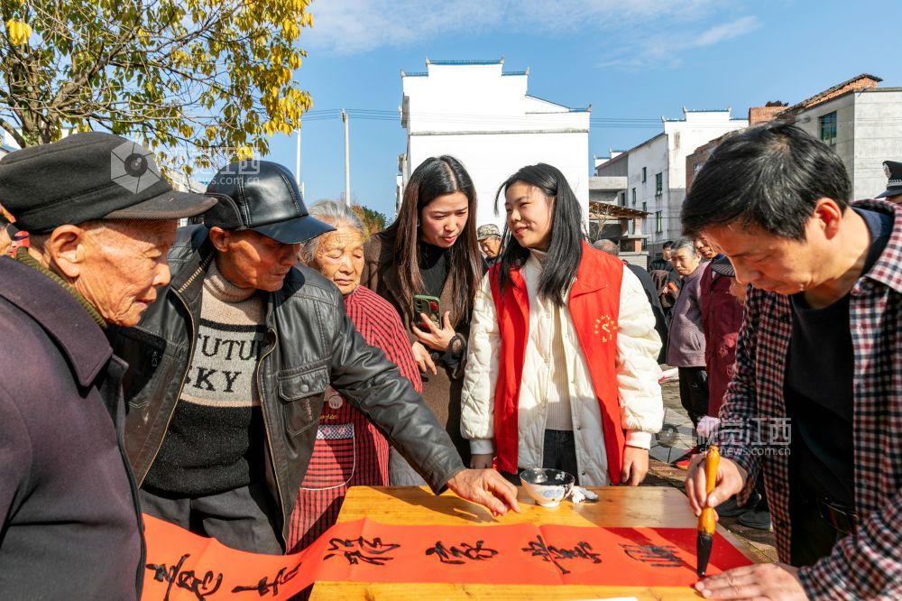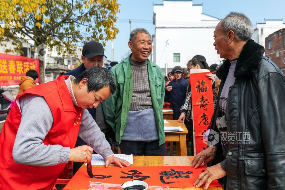 春节将至,江西省吉安市吉水县文化志愿者下基层、走村组、进社区,开展书写春联、拍摄全家福、文艺表演等丰富多彩的新时代文明实践活动,为广大群众送上新春祝福,受到群众的热烈欢迎。