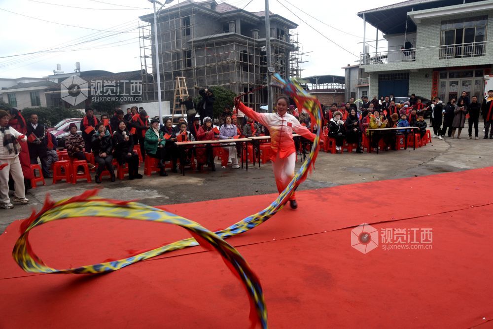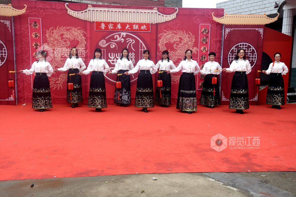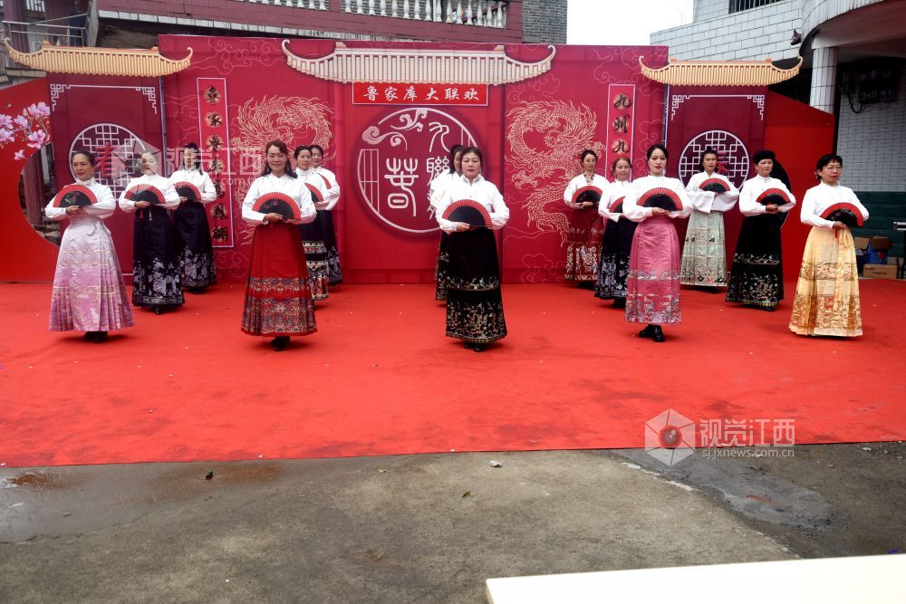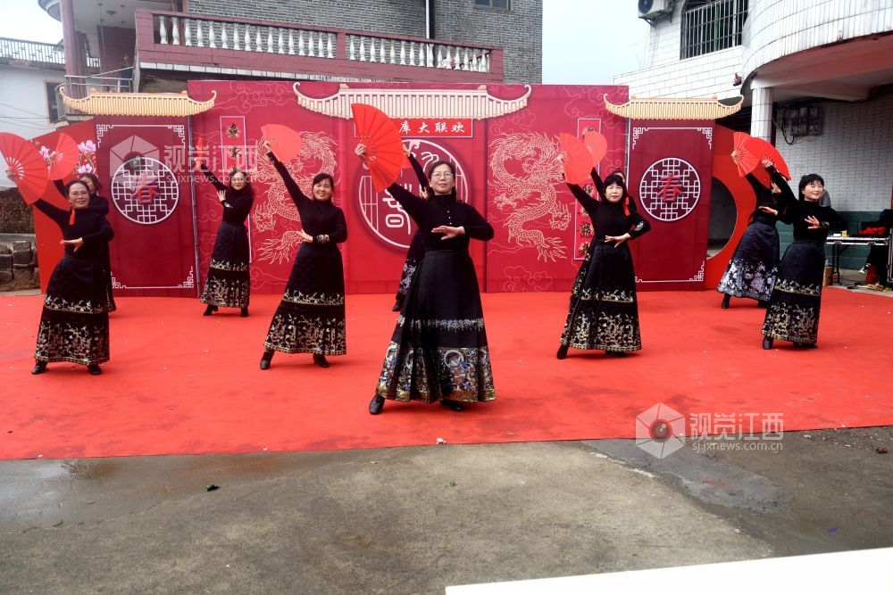 联欢会现场人声鼎沸,热闹非凡,村民们观赏了这场迎春文化盛宴。开幕表演是手绢舞《锣鼓喧天》,充满了新年喜庆氛围。紧接着女声独唱《我在南丰遇见你》、串烧舞、功夫扇、手鼓《好运来》、书简舞、葫芦丝独奏《新编洗衣歌》、马面裙走秀《花妖》、男声独唱、灯笼马面裙秀、舞龙、时装秀等精彩节目轮番上演,最后,文艺演出在全体演职人员合唱《歌唱祖国》声中结束,为父老乡亲送上丰富的春节文化大餐。