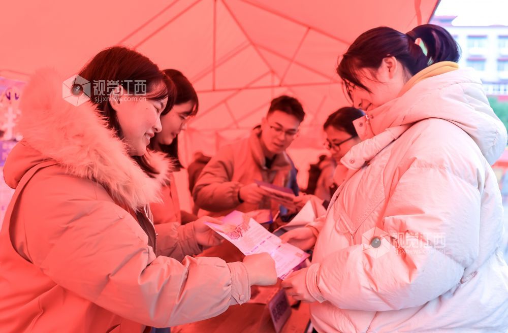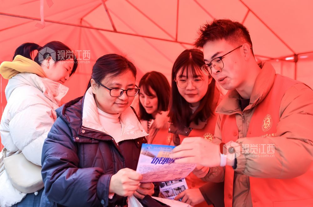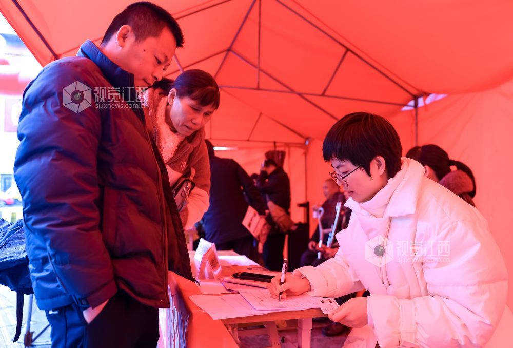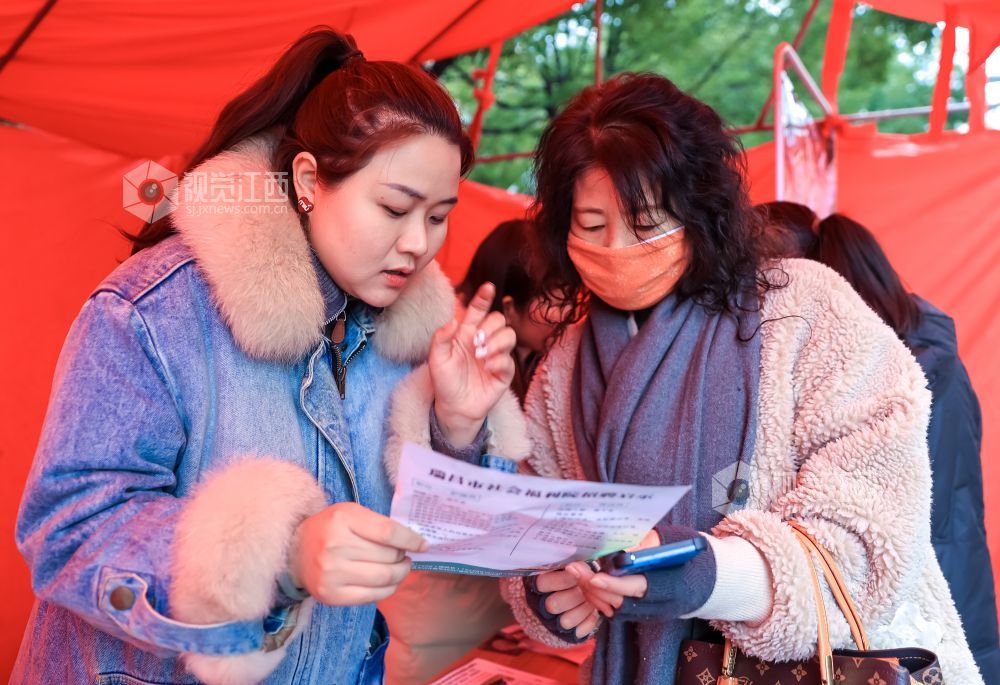 2024年2月3日,江西省瑞昌市联盛购物广场招聘会现场,求职者在了解岗位信息。 为全面做好2024年企业用工开门红、春节返乡人员留工工作,当日,瑞昌市举行“赣就有未来”2024年春风行动暨就业援助月专场招聘会,为企业和求职人员搭建劳务供需平台。现场参加招聘的有75家企业,为求职者提供就业岗位4000多个。