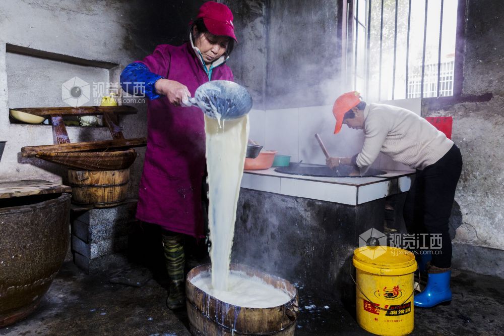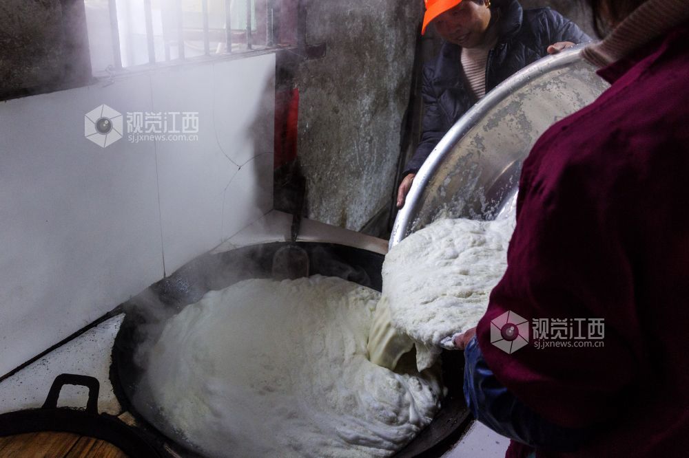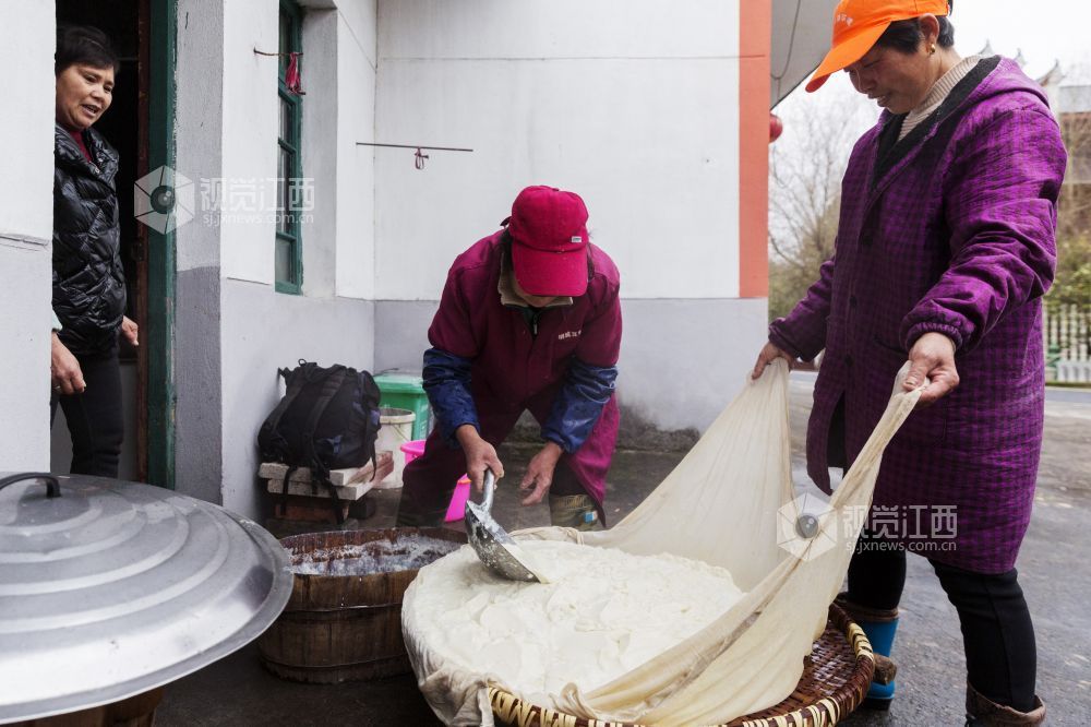 2月4日,立春。正值农历腊月二十五,民谚说:“二十五,磨豆腐”,江西新余渝水区良山镇下保村村民家家户户迎春接福磨豆腐。