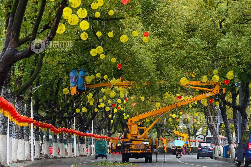 江西省宜春市万载县市政部门在县城公园、广场、大道安装红、黄多彩亮化景观灯笼,营造出浓浓的节日气氛,喜迎新年到来。