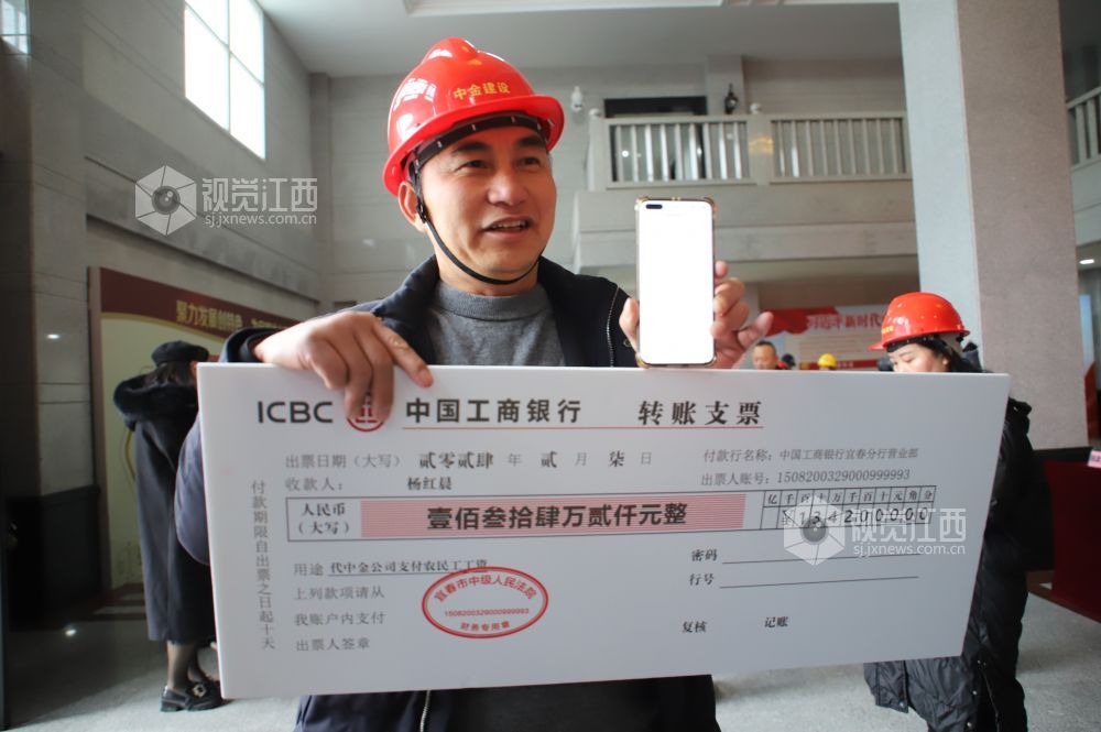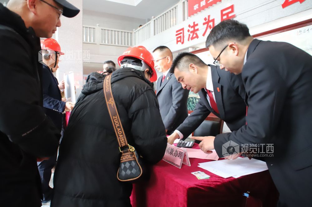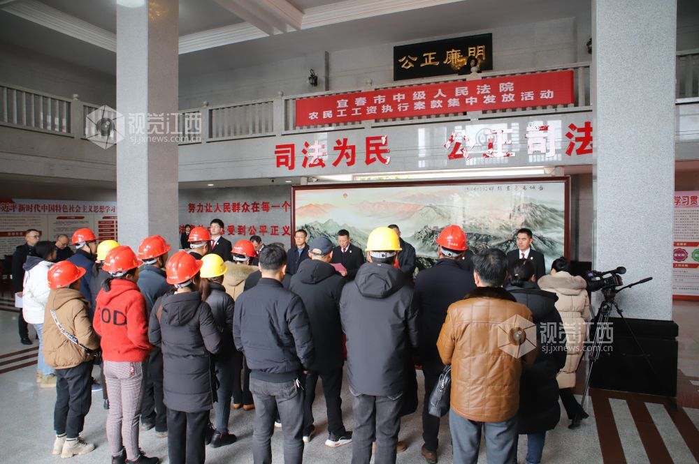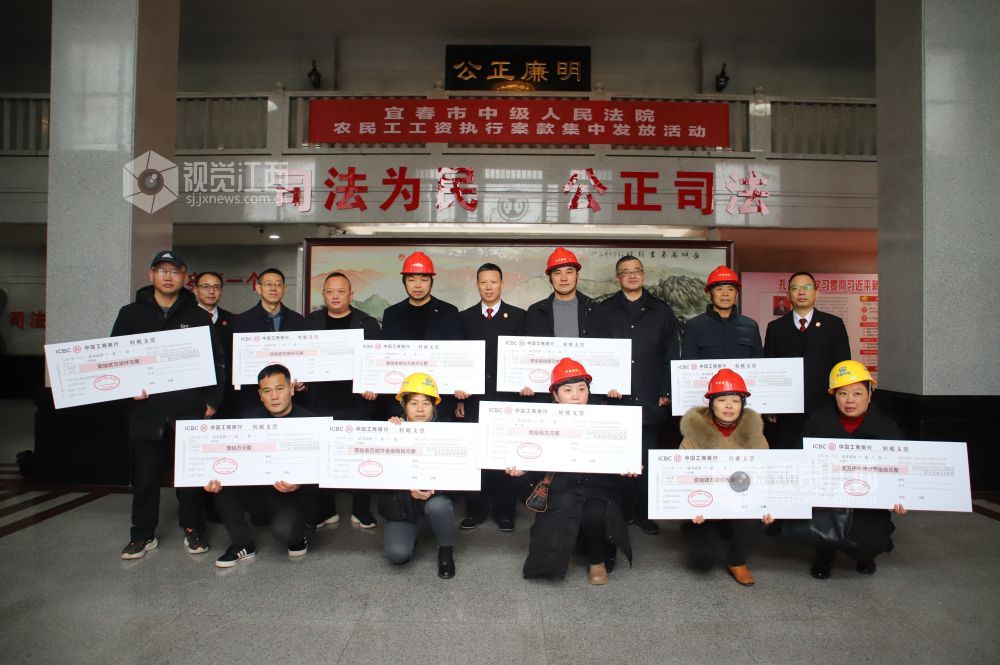 2月7日上午,江西省宜春市中级人民法院在该院行政楼一楼,举行农民工工资执行案款集中发放活动。在两名市人大代表、法院办案人员、农民工代表、媒体记者等人的共同见证下,400余万的涉案款集中发放给领款人。