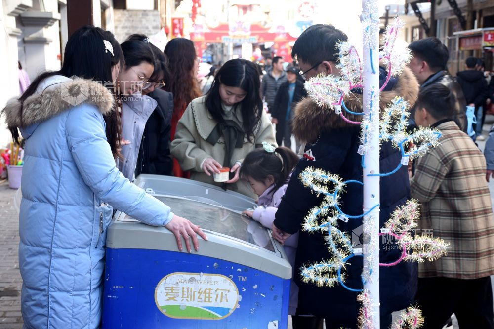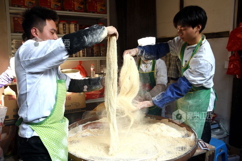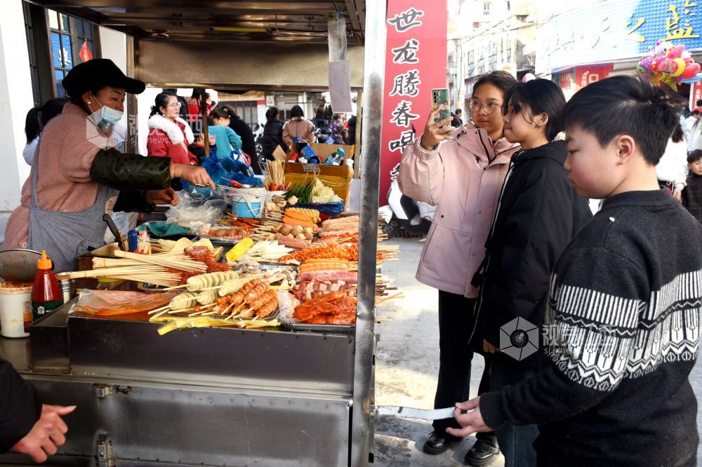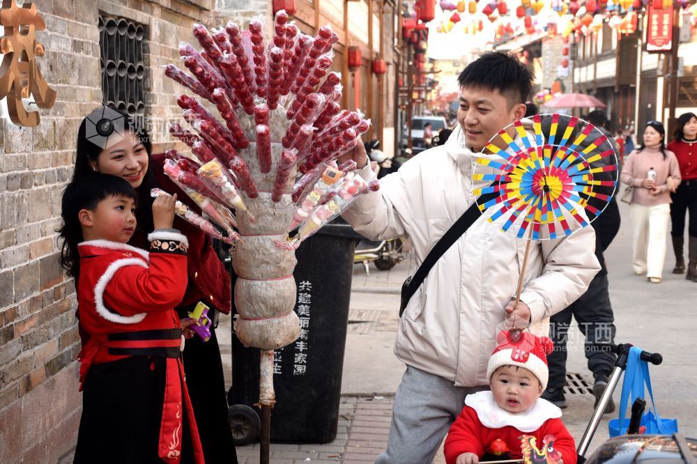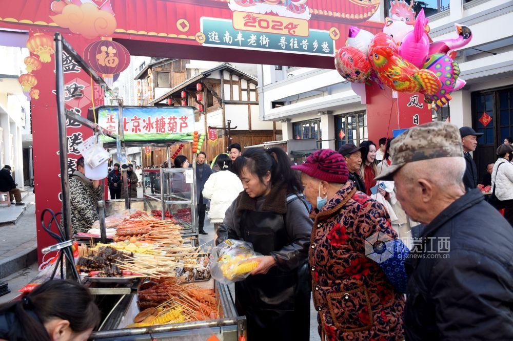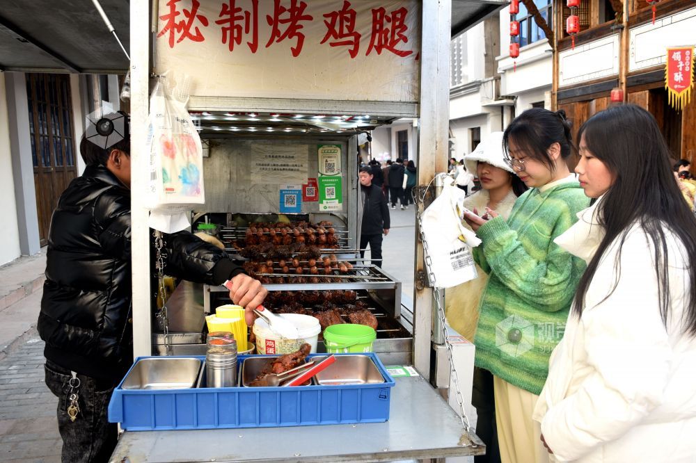 2024年2月11日,在江西省抚州市南丰县南门古城,游客和市民们一边逛古街、游古城,一边品尝特色美食,寻往昔乡愁,度过一个不一样的春节。