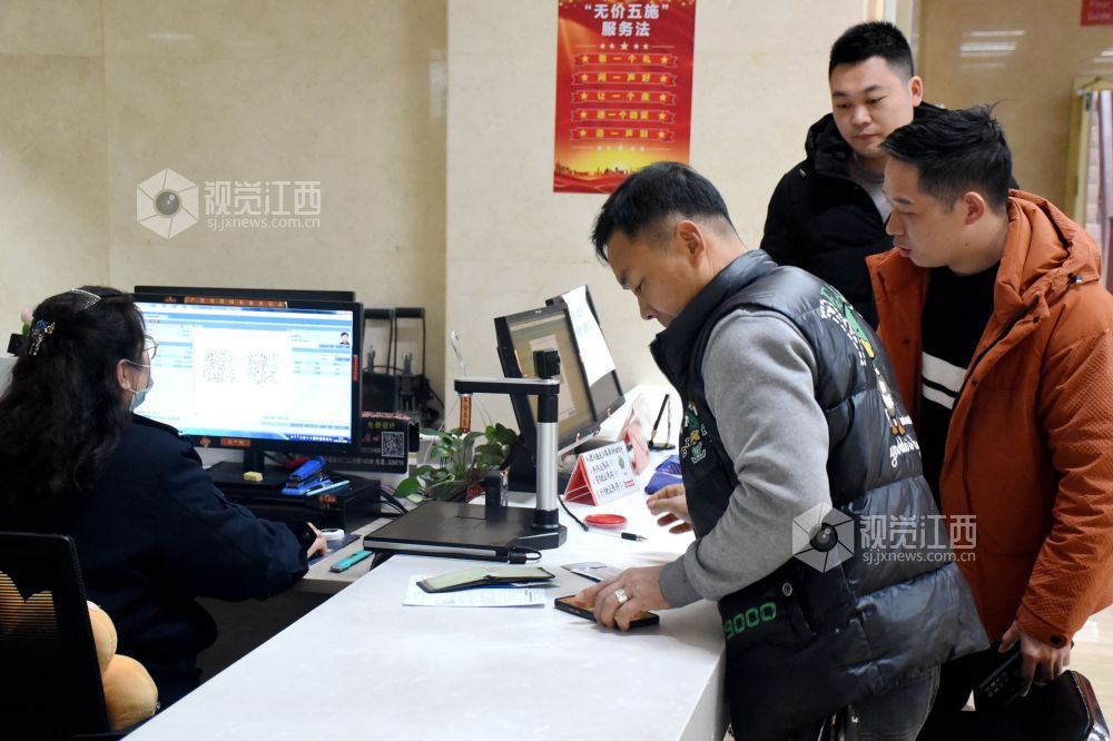 2024年2月13日,在江西省抚州市南丰县政务服务中心办事大厅,工作人员正在为群众办理业务。