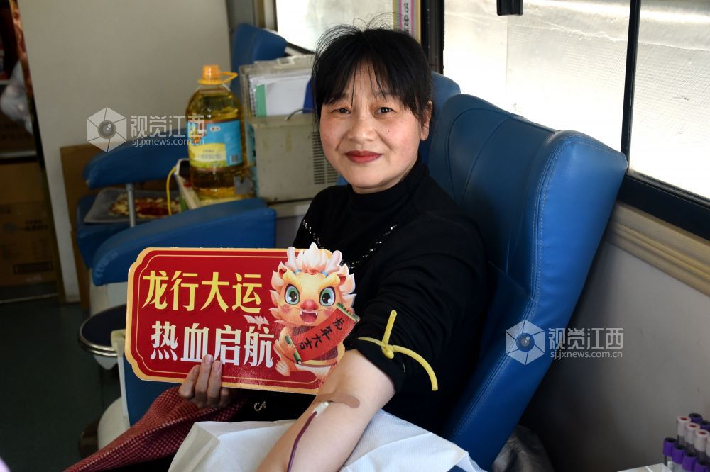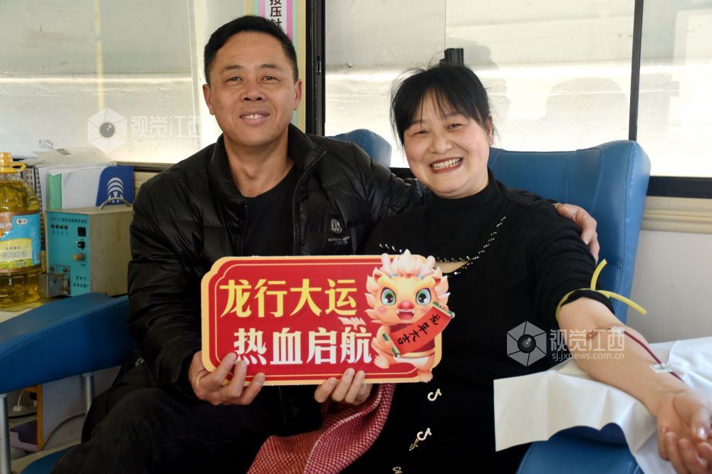 2024年2月14日,在江西省抚州市南丰县中兴广场“爱心献血屋”里,几名爱心人士在进行无偿献血。