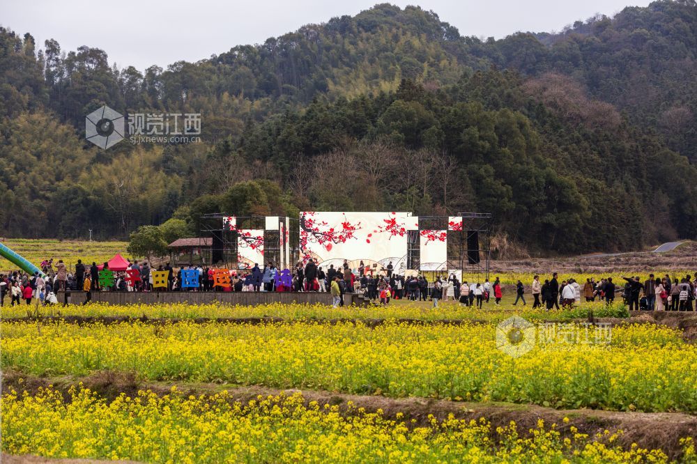 2月14日正月初五,江西新余渝水区良山镇下保村,一场新春游园会正在油菜花海中举行,大片油菜花海如金色地毯铺满大地,如诗如画,美不胜收,吸引市民前来下保体验看、采、吃、游、娱等田园生活,将都市田园梦变为触手可及的现实体验。