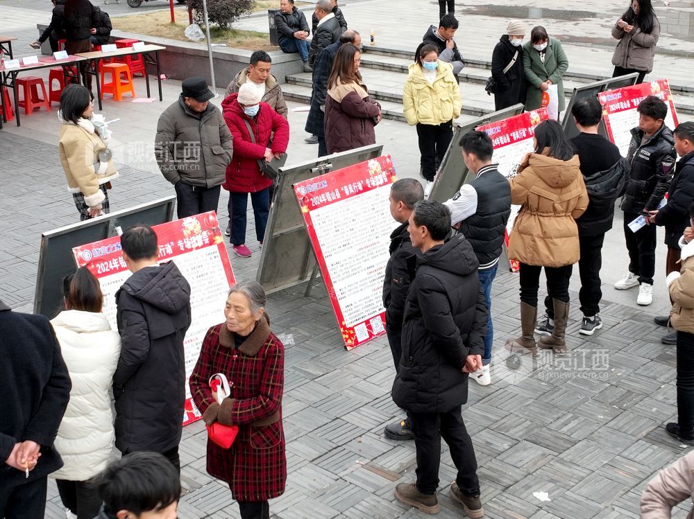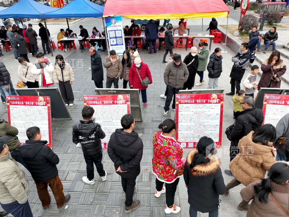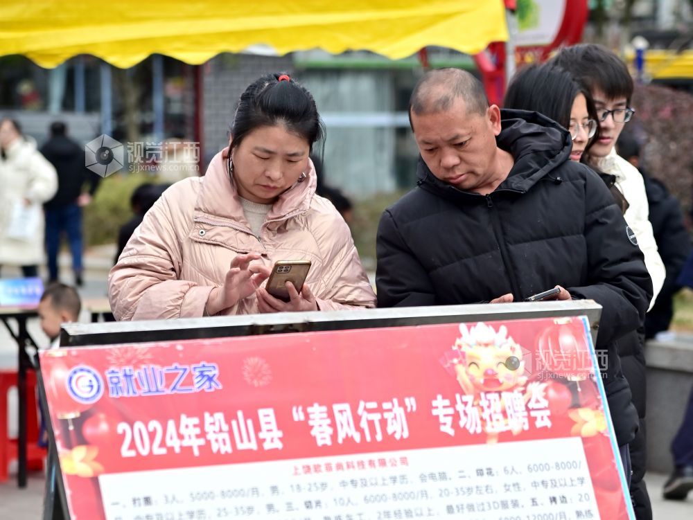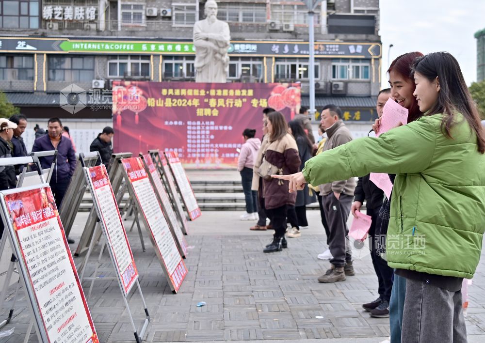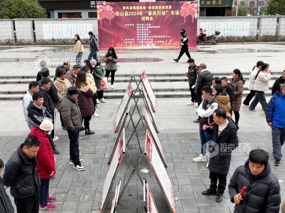 2024年2月16日,在江西省上饶市铅山县河口镇辛弃疾广场,市民正在寻找适合自己岗位。由铅山县人力资源和社会保障局、铅山县工业园区、铅山县残联、铅山县新时代文明实践促进中心等单位主办,铅山县就业创业服务中心承办的2024年“春风行动”系列招聘会正式启动,招聘会从2月15起至2月23日,将陆续深入乡镇举行招聘会。此次招聘以“春风送岗促就业,精准服务助发展”为主题,抓住春节前后劳动者换岗流动高峰期和外地务工人员集中返乡的关键期,为企业和求职者提供双向沟通、精准就业的服务,现场共有49家重点企业现场招聘,累计提供就业岗位数2000余个。