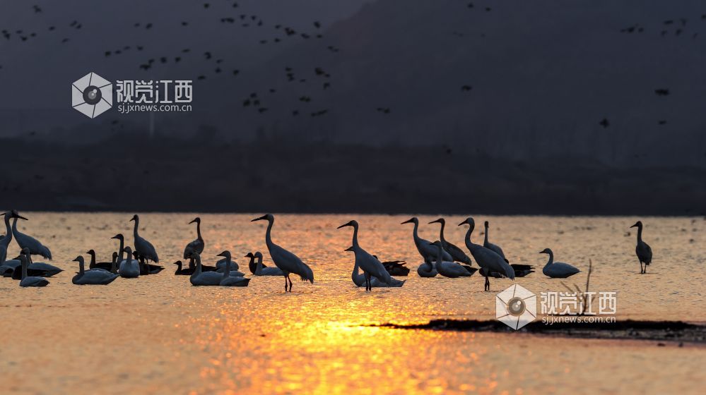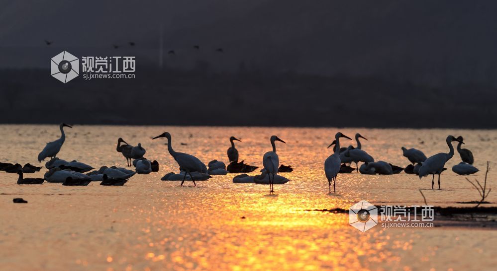 江西九江:湿地余晖 候鸟入画