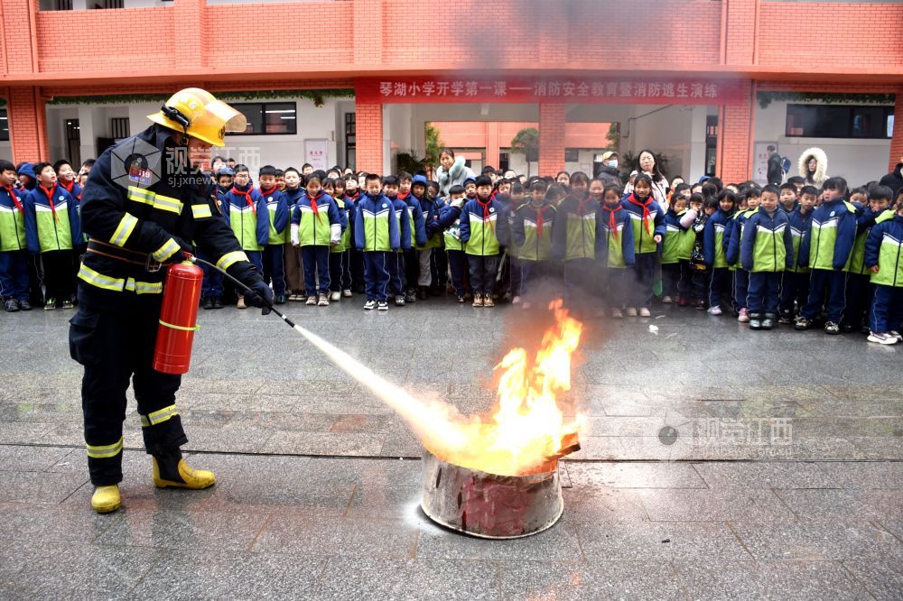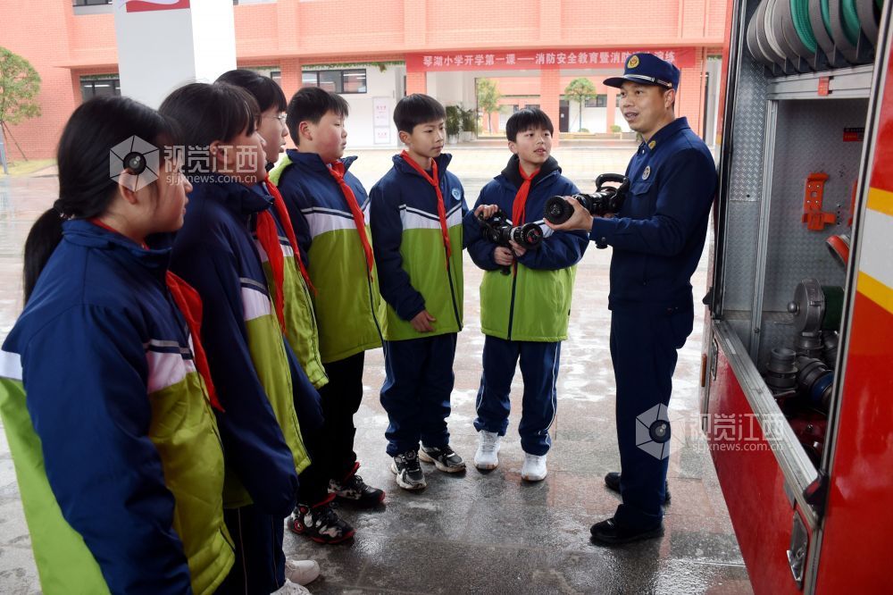 2024年2月26日,江西省抚州市南丰县琴湖小学关工委联合县消防救援大队开展“开学第一课”消防教育进校园活动,旨在加强小学生消防安全教育,了解消防安全知识。