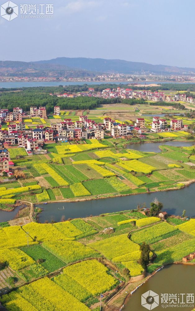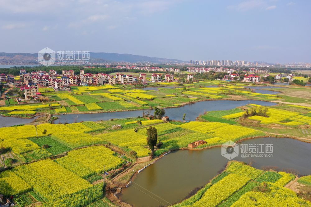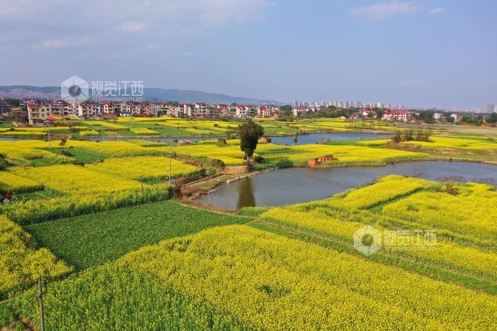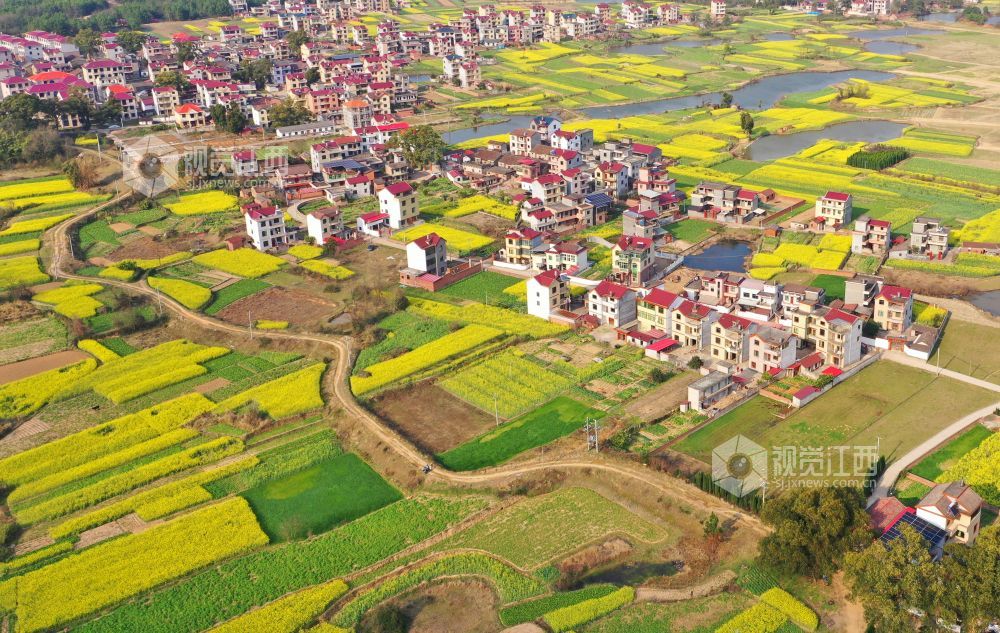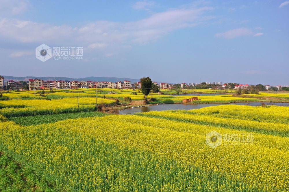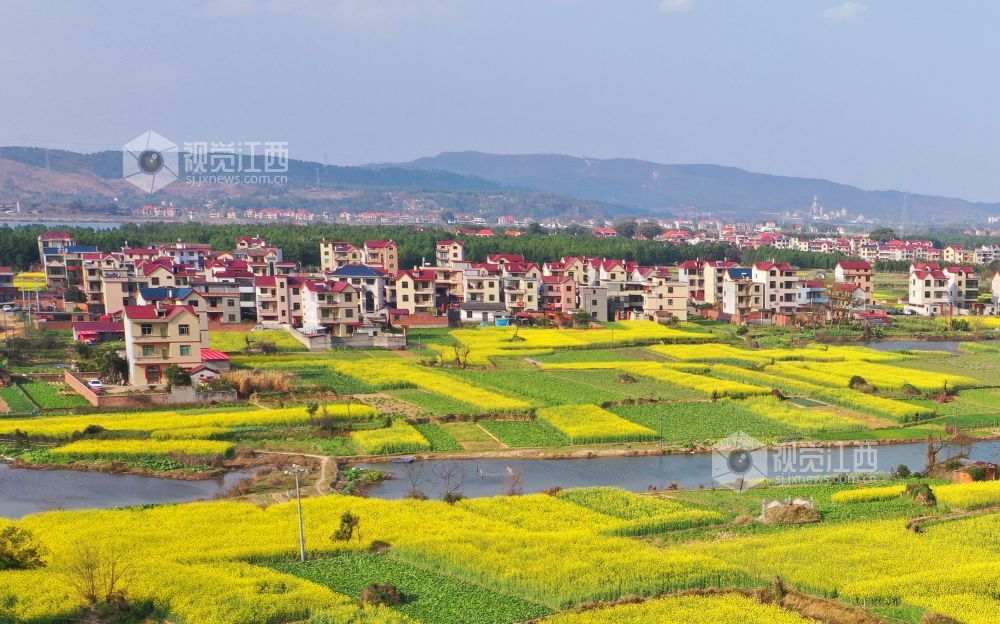 初春时节,泰和县油菜花竞相开放,金色铺满大地,与红瓦农房相互映衬,构成一幅春日风景画。
