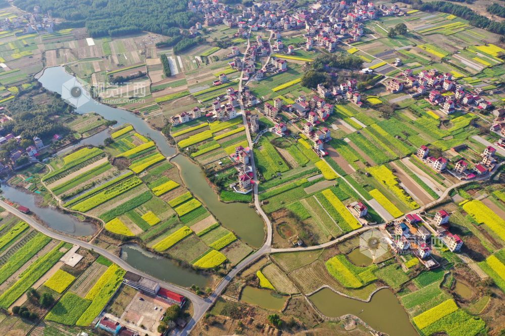 2月19日,江西省吉安市泰和县塘洲镇乡村,油菜花开春色满园。
