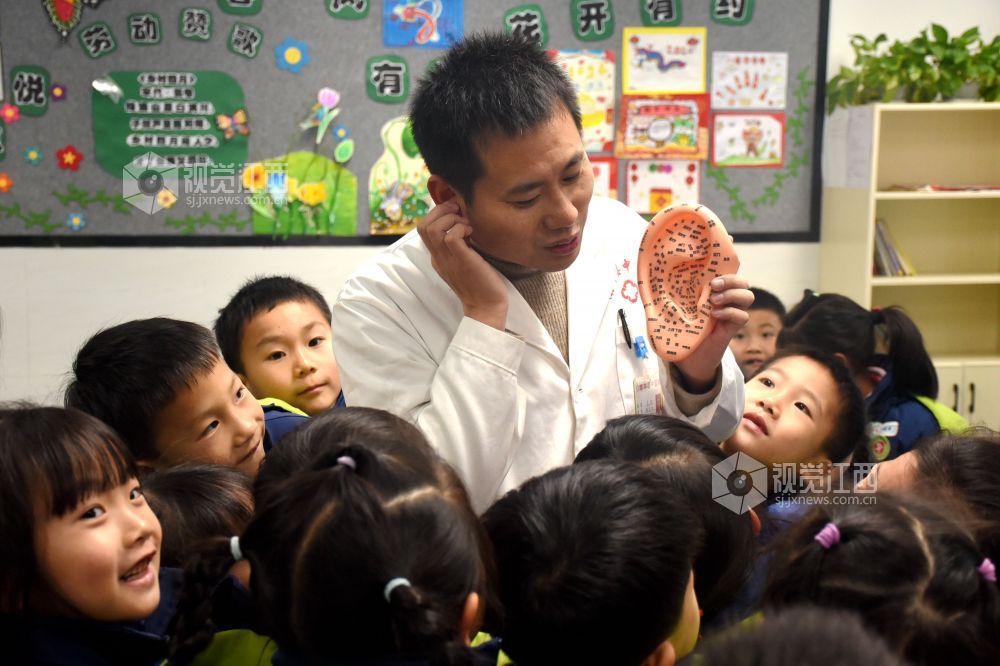 活动中,中医院的医生利用课件、耳部模型教具等,向学生们介绍全国爱耳日的由来,手把手带领学生们练习“耳保健操”,并现场为学生们做了耳部健康检查,让小学生从小养成科学爱护耳朵的良好习惯。