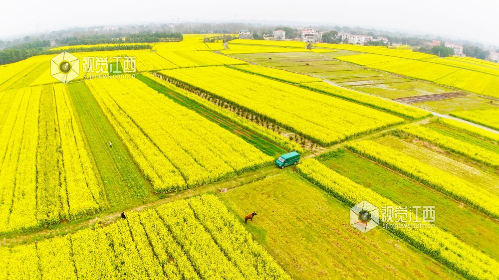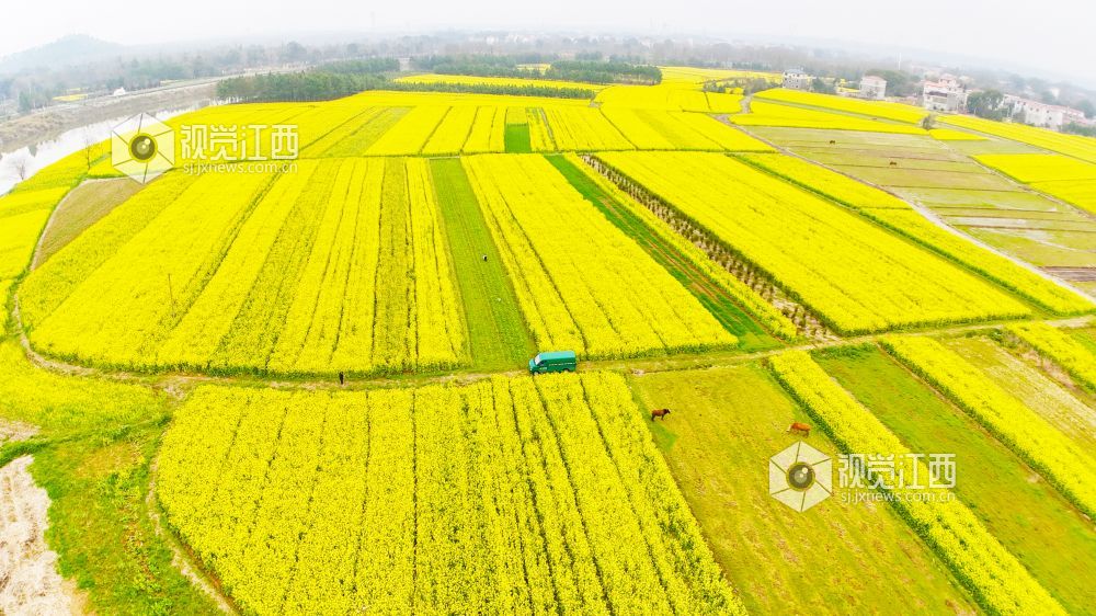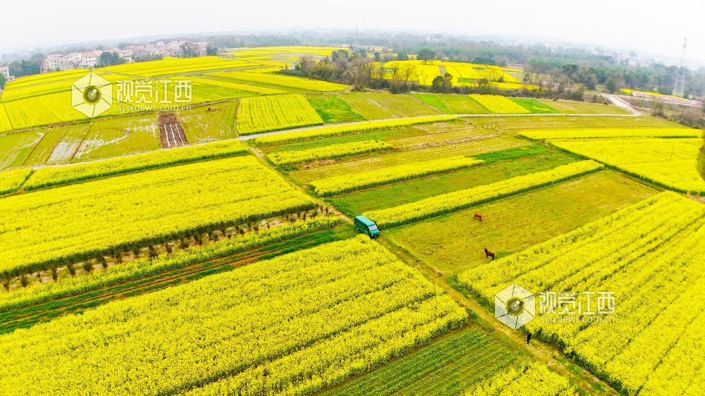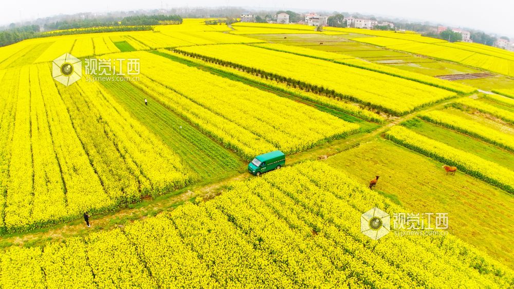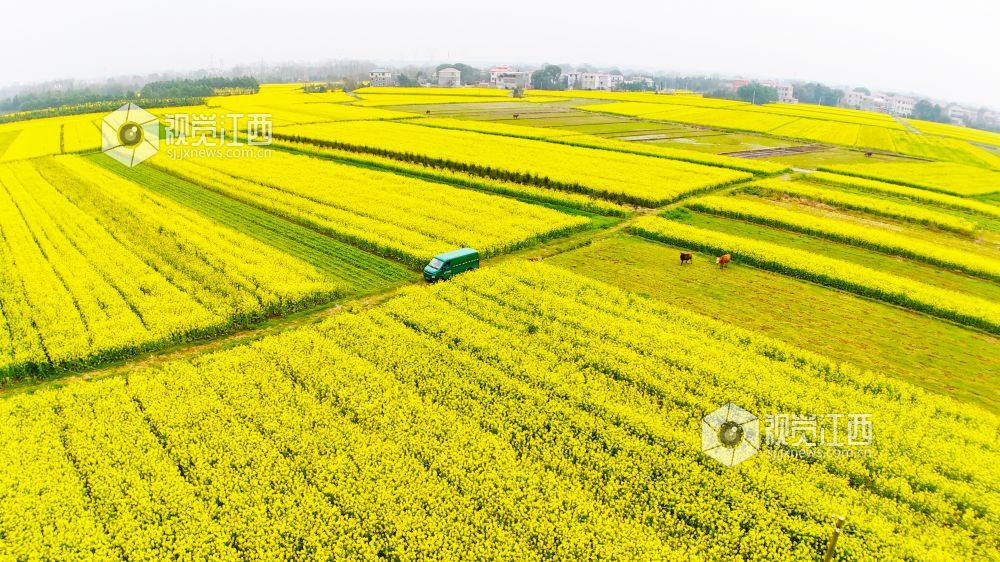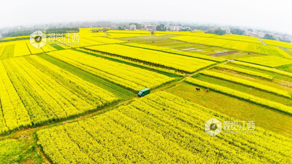 春回大地,万物生长。3月2日,在江西省泰和县马市镇武溪街村,一片片油菜花竞相绽放,把乡村田野装扮得一片金黄。一辆绿色的邮政投递车徜徉在这金色的“海洋”中,显得格外耀眼。铺满田野的油菜花,粉墙黛瓦的房屋,金色“海洋”中的“邮政绿”,与远处的山峦相映成趣,构成了一幅美丽绝伦的乡村美景。