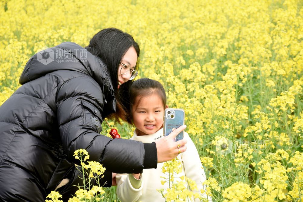 近期,气温回升,南丰县境内栽种的油菜花迎春绽放,满目金黄,美不胜收,特色美景让游客流连忘返,游客们走近大自然观光、游览、拍照。
