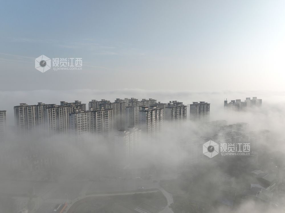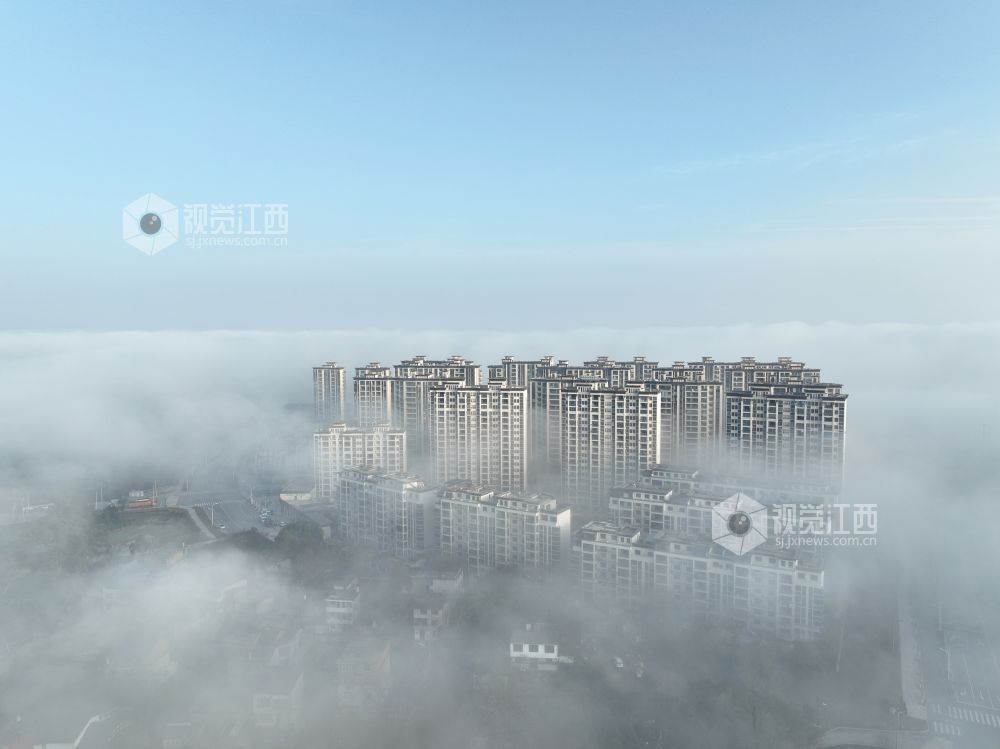 2024年3月3日,航拍江西省上饶市铅山县河口镇雨后城市景致,云雾缭绕,城市建筑若隐若现,颇有“意境”,壮美如画。