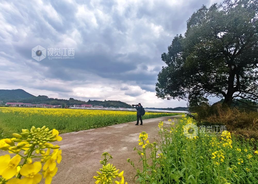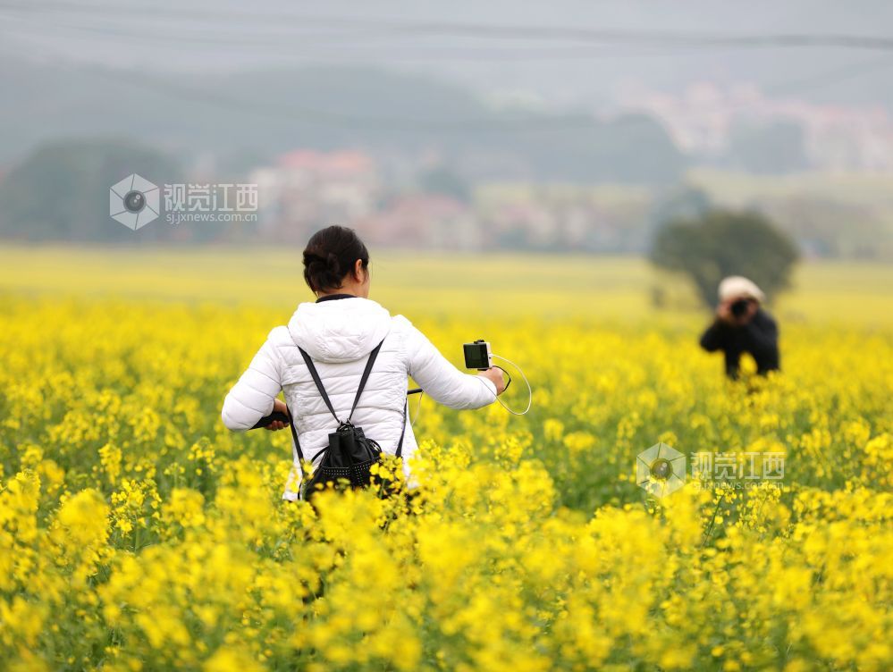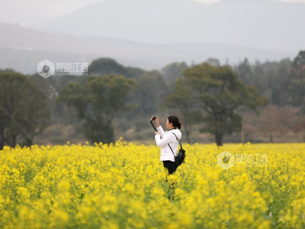 眼下,分宜县各乡镇的油菜花陆续竞相绽放,宛若金色地毯铺满田野,与远处的村庄、山峦等相映成趣,呈现出一派春意盎然的田园风光,吸引众多游客前来踏青赏花,感受春天的气息。