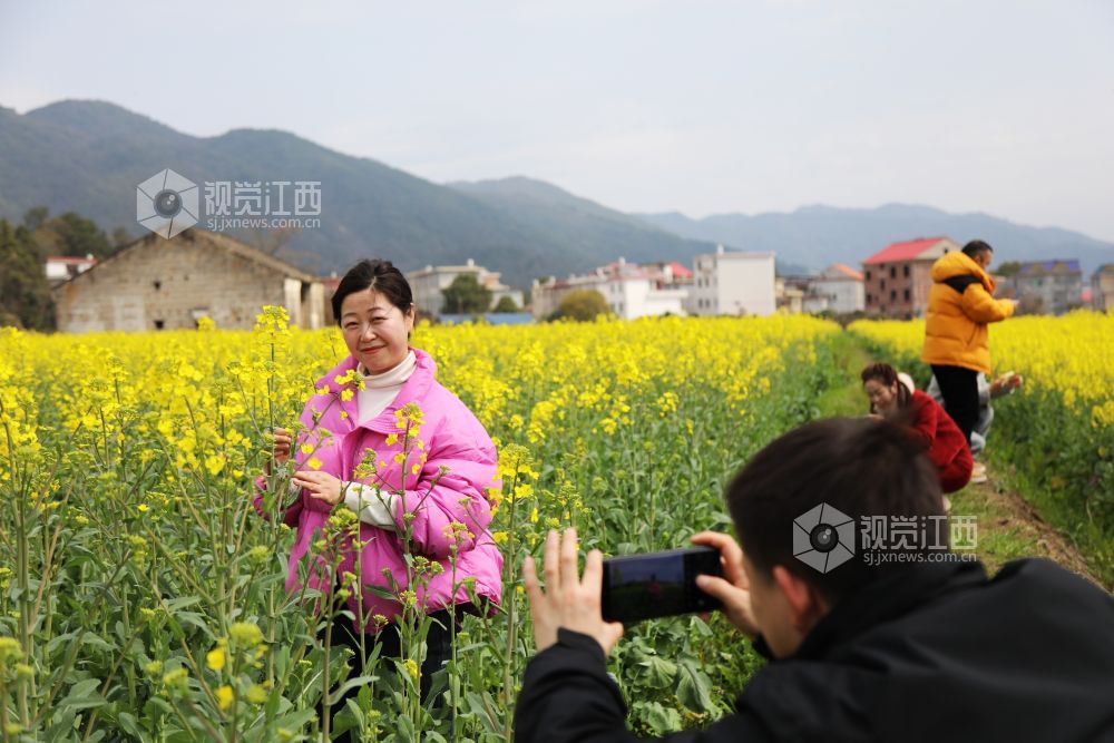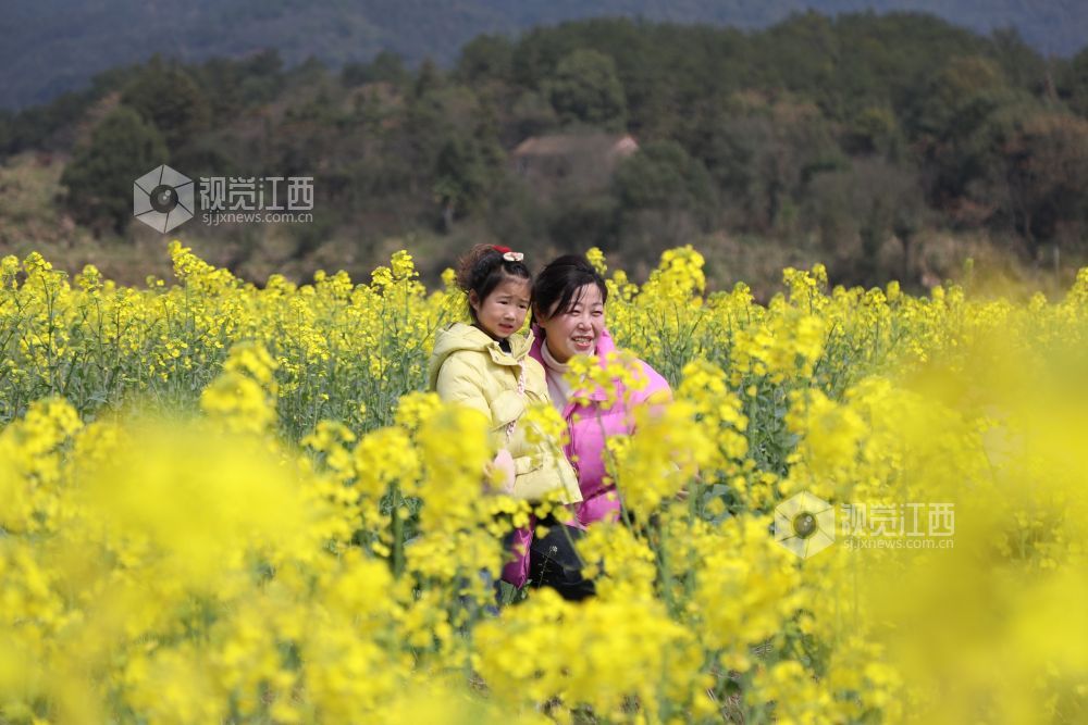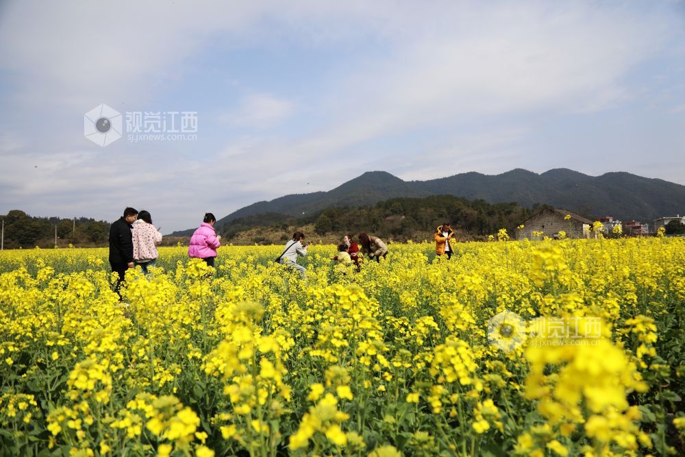 3月4日,江西省莲花县三板桥乡清水村800亩油菜花迎来盛开季,田野一片金黄,秀美如画,吸引了不少市民前来,畅游油菜花海,乐享春日时光。