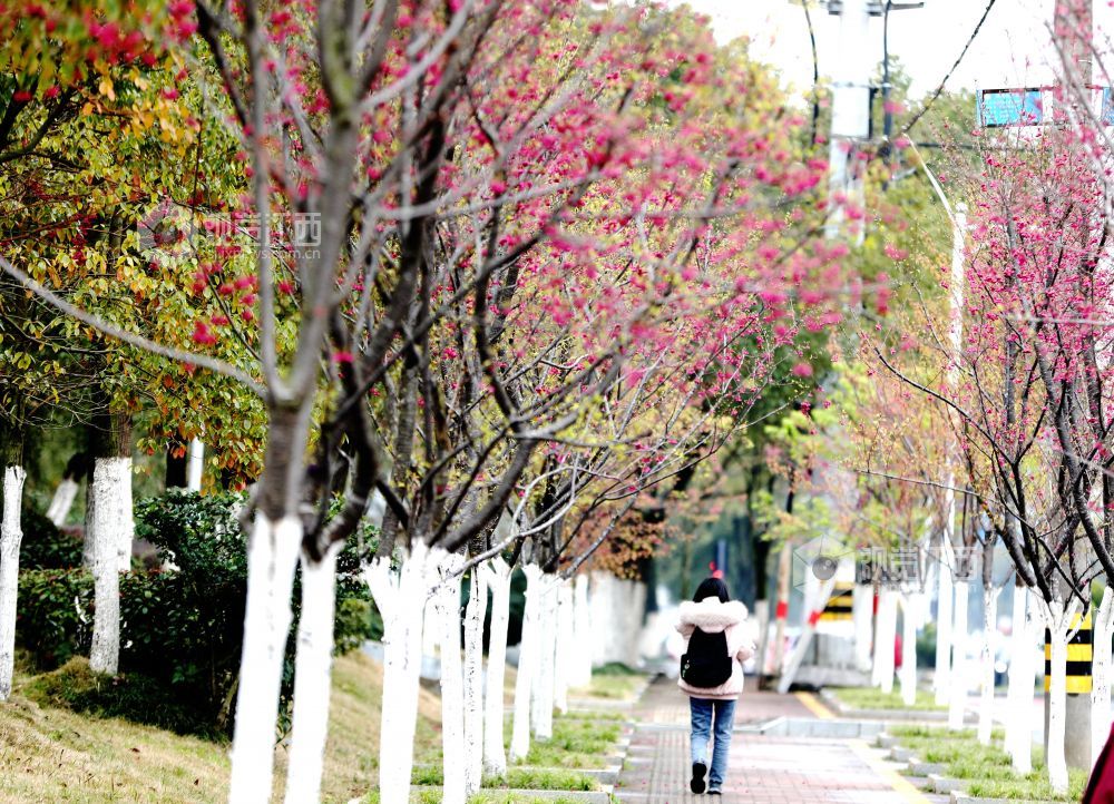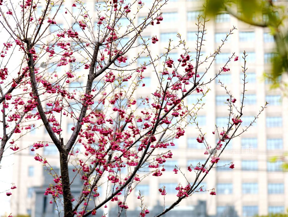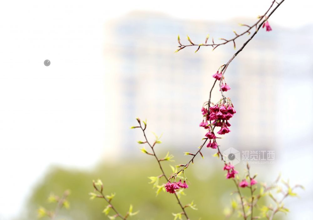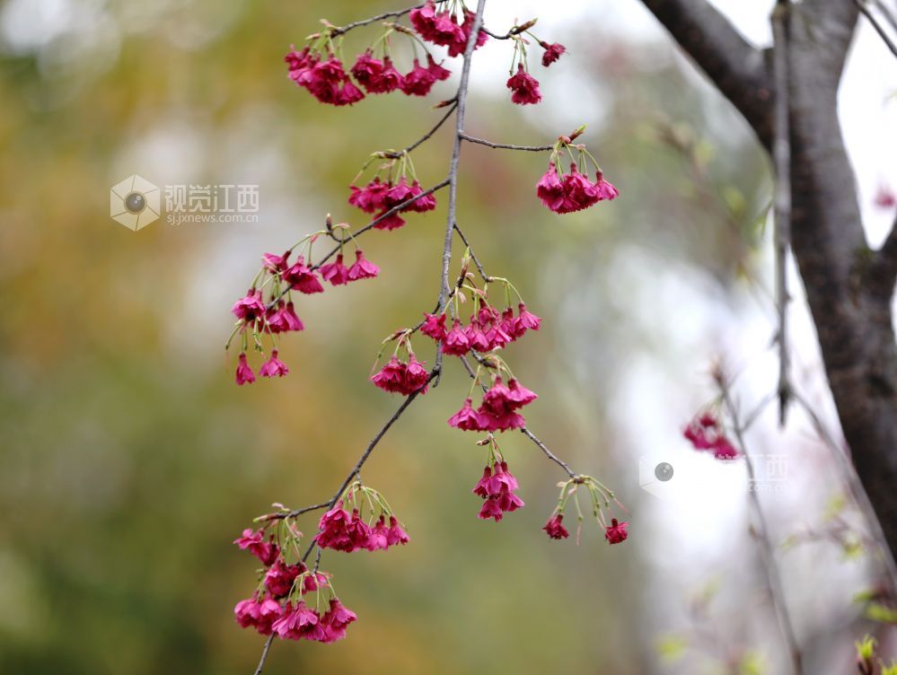 人间三月天,风吹百花开。春日的江南到处是“乱花渐欲迷人眼”的美景。2024年3月4日,江西省分宜县体育馆旁的钟花樱浪漫绽放,一朵朵玫红色的小花像一口口悬挂的小吊钟,簇拥在枝头,开出一派盎然的春意,将县城装扮得缤纷多彩。