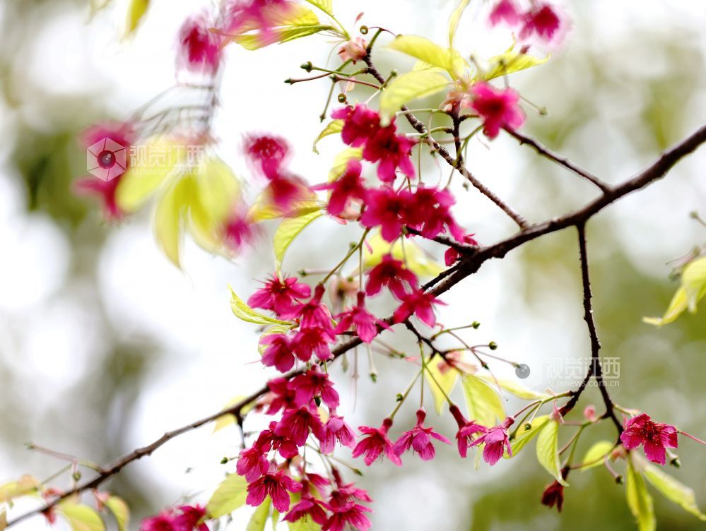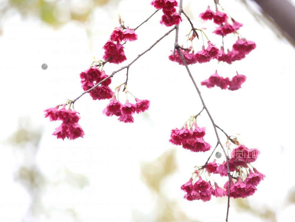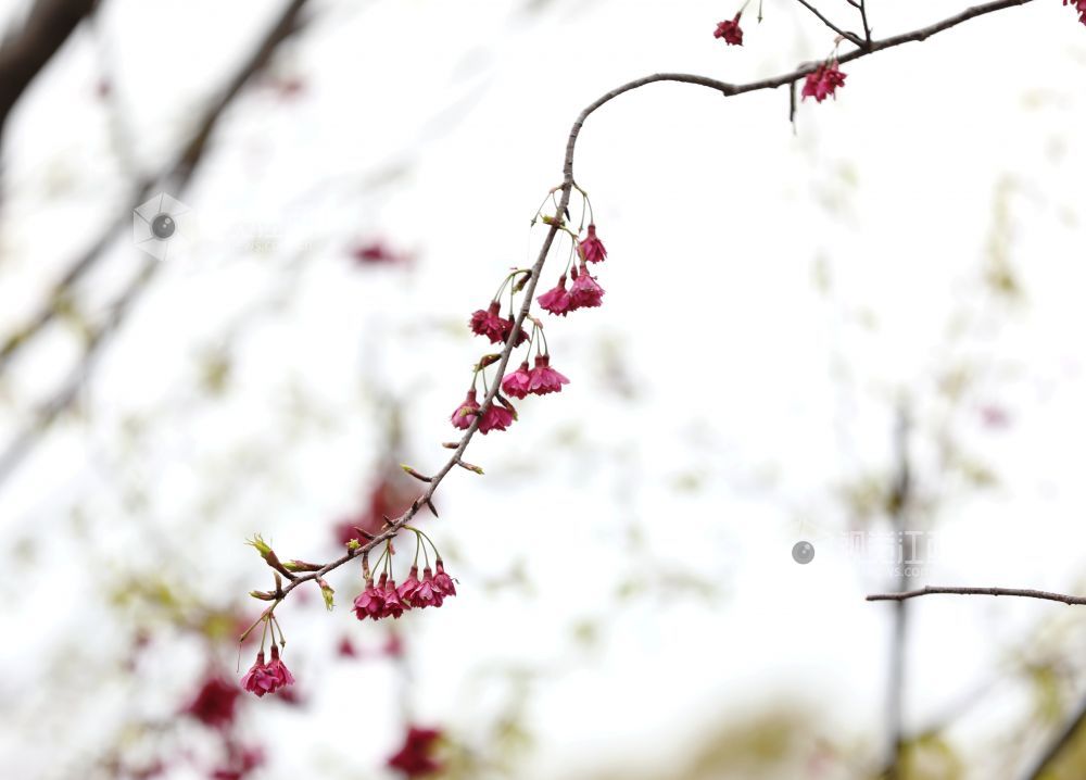 据了解,钟花樱,又叫福建山樱花、寒绯樱,因花貌长势像古时垂吊铜钟而得名。花期通常是在3月上旬开放,3月中旬左右达到盛花期,先花后叶,是最早一批向人们传递春意的樱花品种。