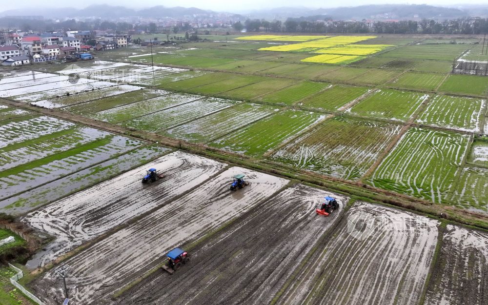 3月5日是惊蛰节气,江西省宜春市万载县农民抢抓农时加紧春耕生产,田间地头机声隆隆,一派人勤春早忙碌景象。