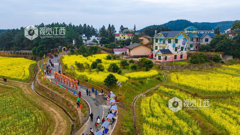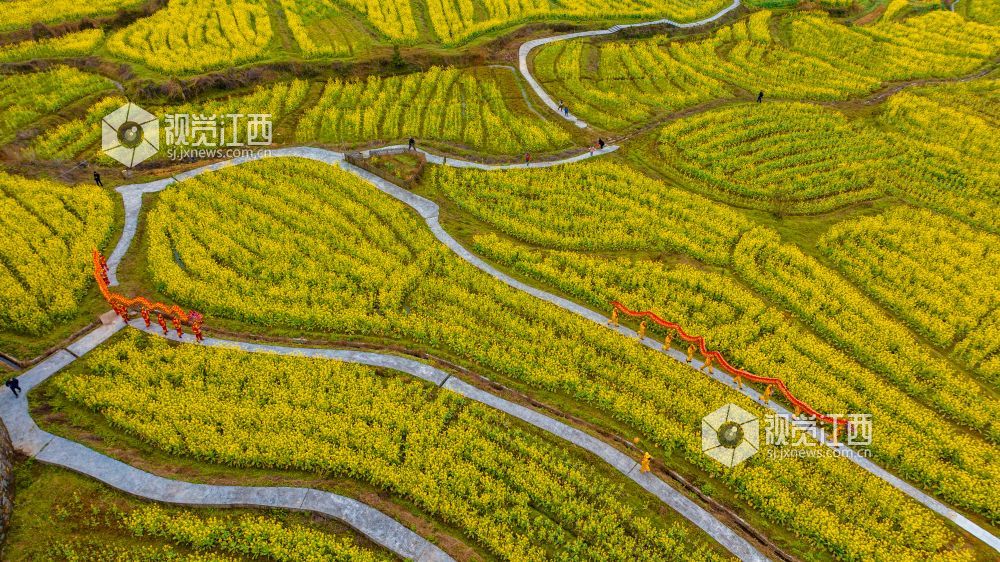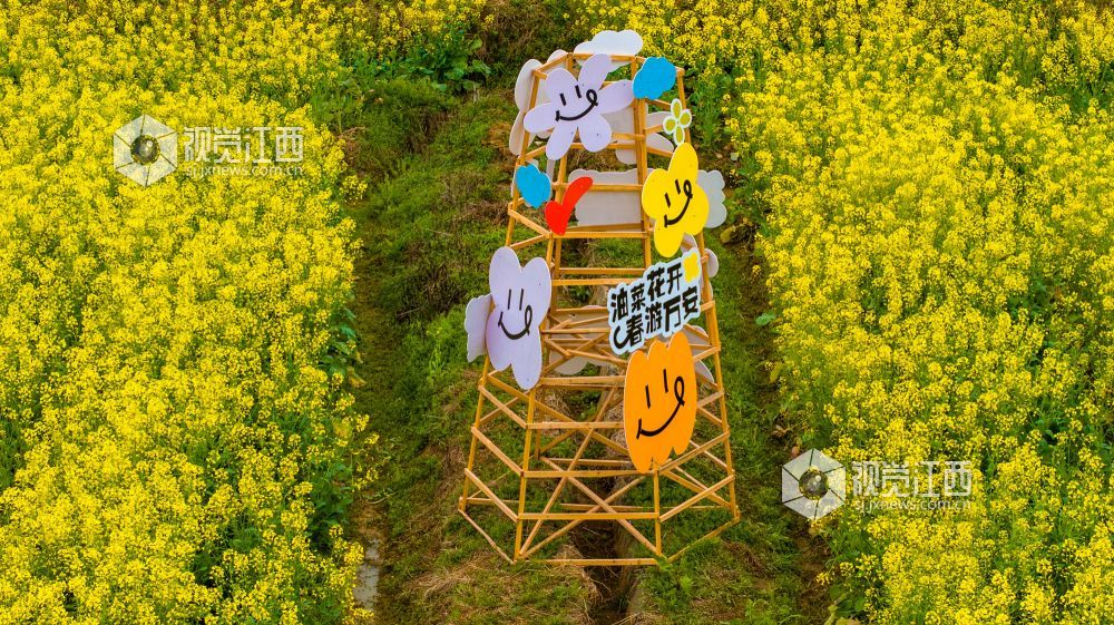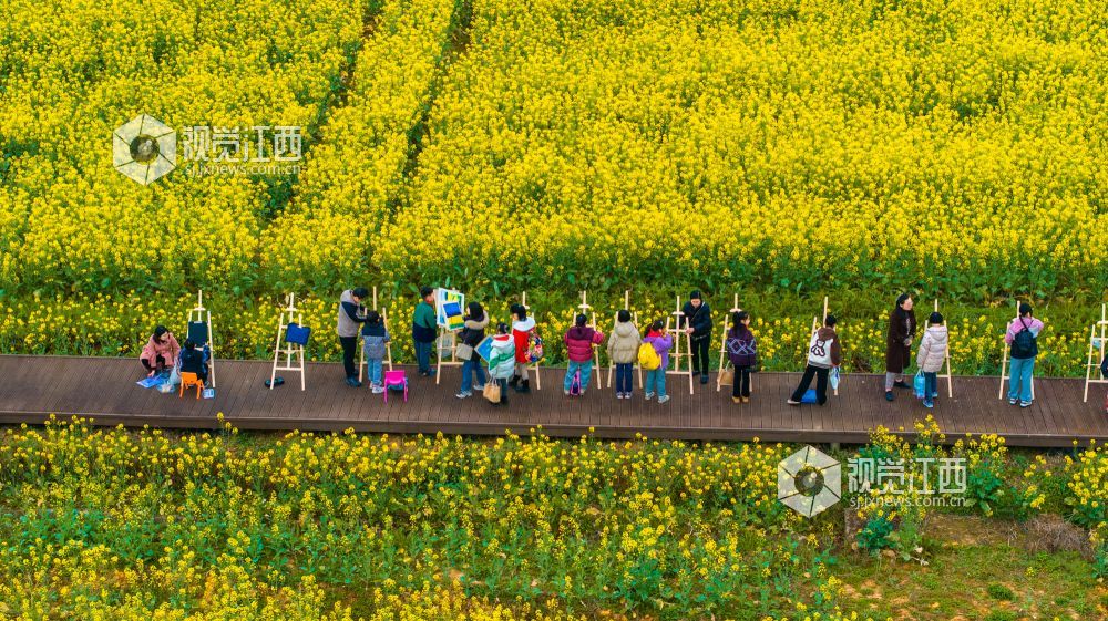 3月3日,江西省吉安市万安县“油菜花开 春游万安”油菜花节在高陂镇田北农民画村拉开帷幕。千亩连片的油菜花竞相开放,争奇斗艳,构成了一幅绚丽多彩的春日画卷,吸引了众多游客前来踏青赏花、拍照、打卡。