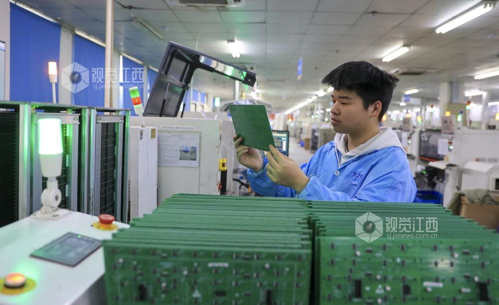 2024年3月5日,江西省瑞昌经开区科技园江西天之彩显示技术有限公司生产车间内,工人正在赶制国内外订单产品。