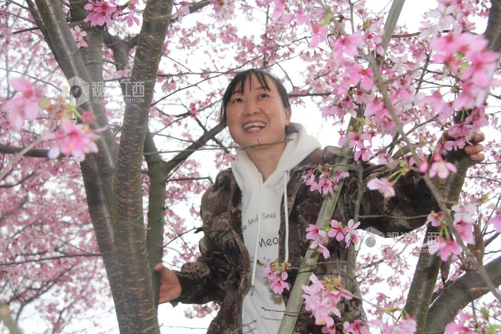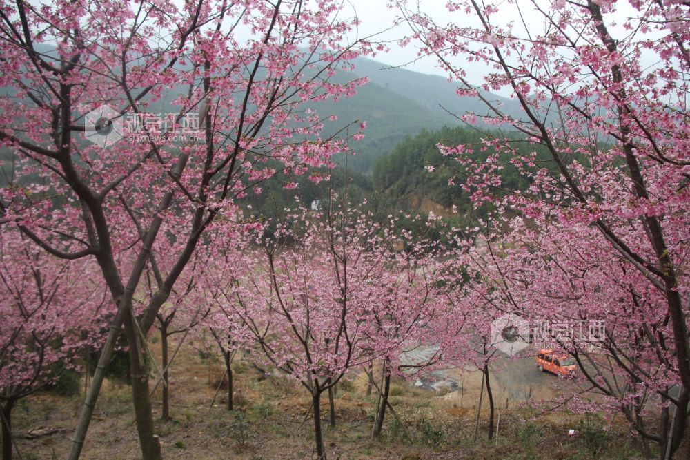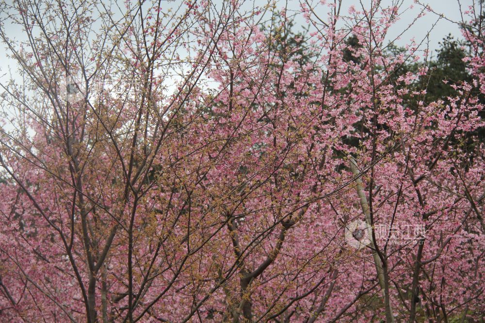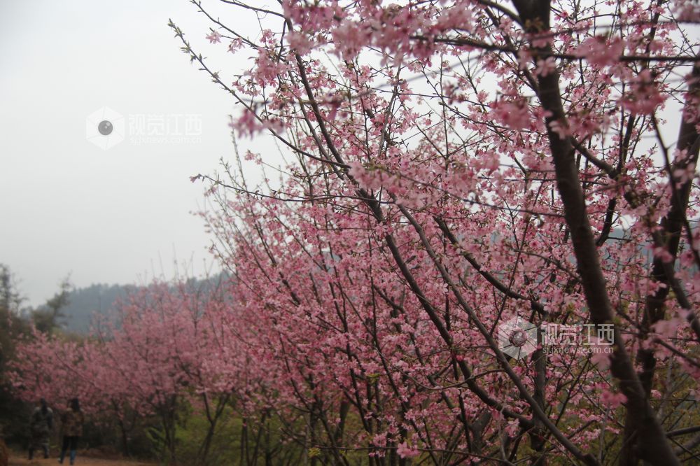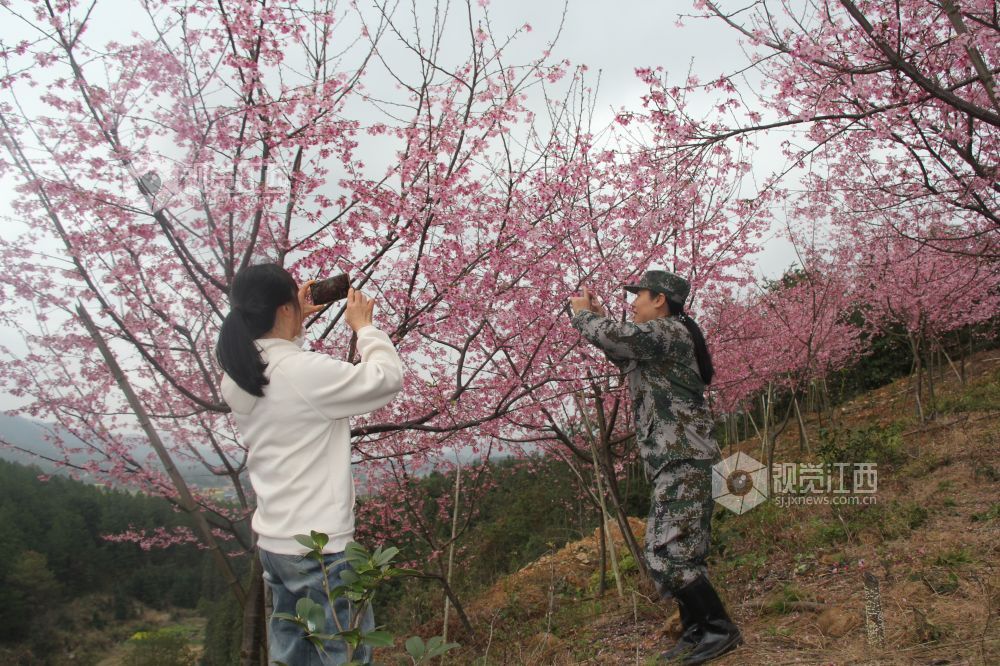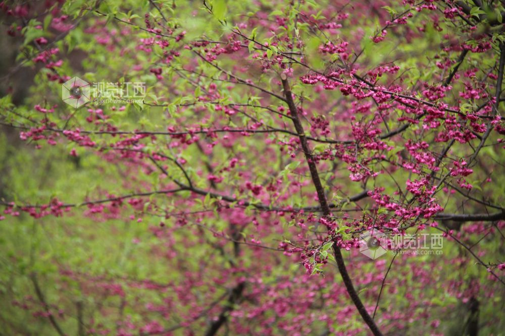 雪蕊朱樱万树春,蜂飞蝶闹竞时新。3月5日,江西省吉安市安福县明月山林场三舍林区百亩樱花为林区增添了秀丽春色,吸引了许多游客驻足观看。