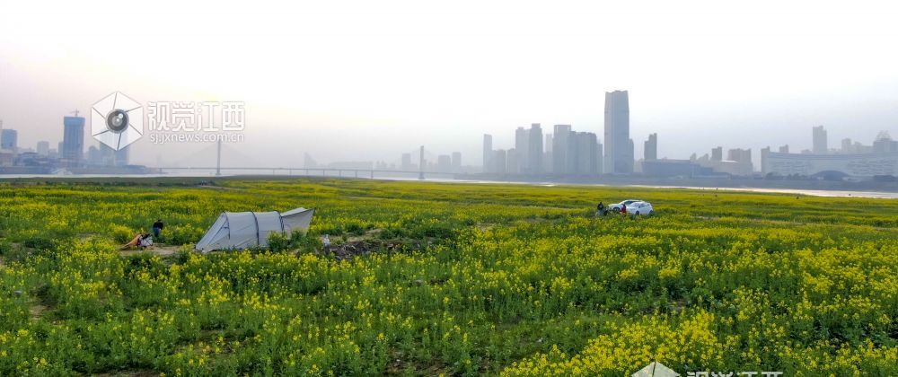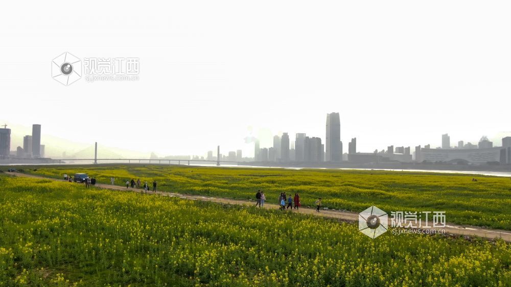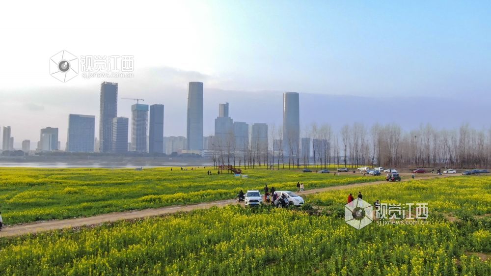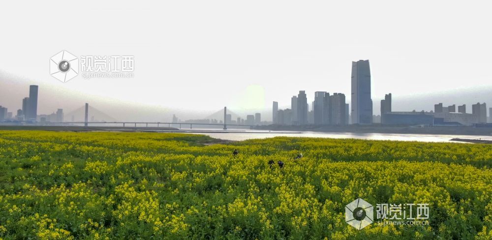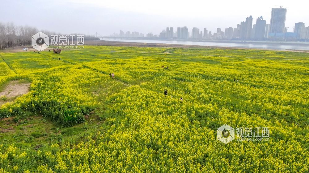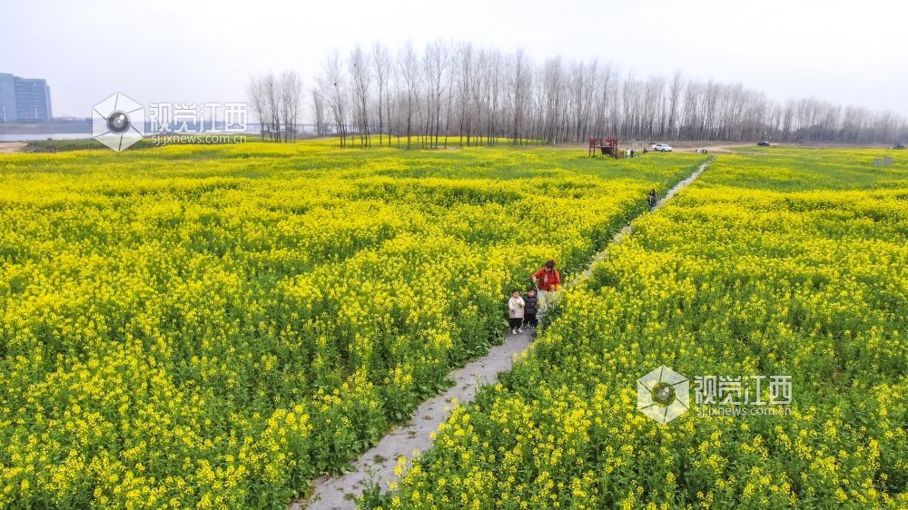 3月2日,阳光明媚,春光乍暖。江西省南昌市东湖区扬子洲镇三联外滩滩头的近千亩油菜花竞相绽放,花香四溢。