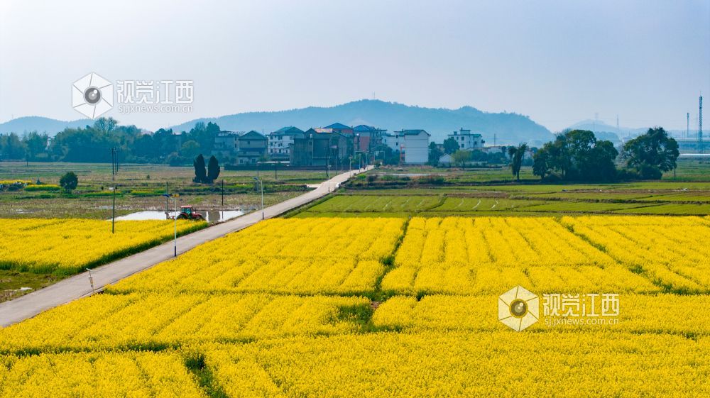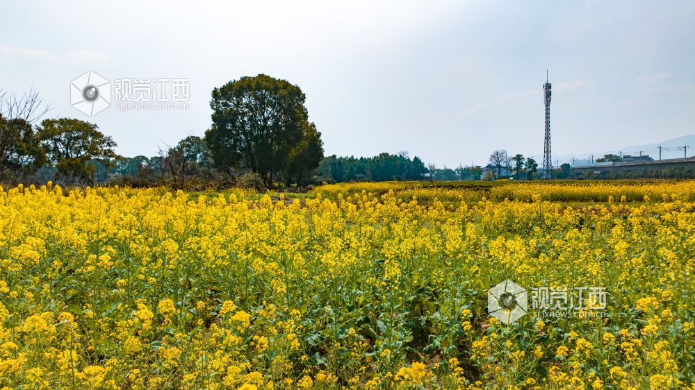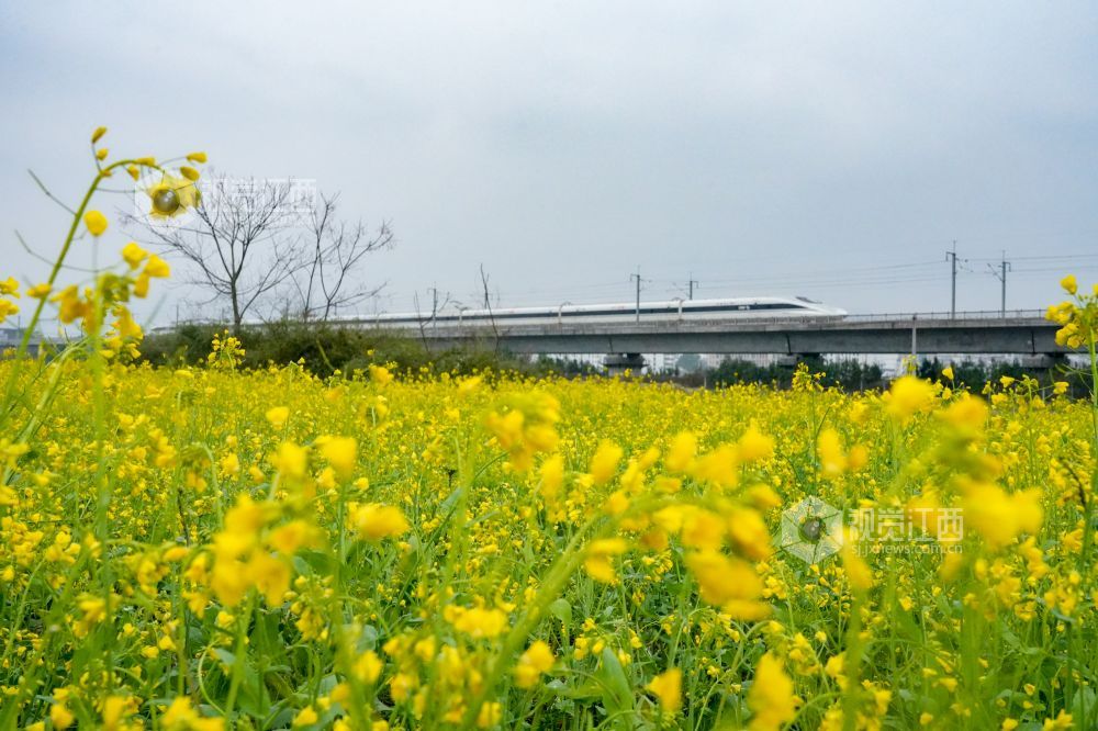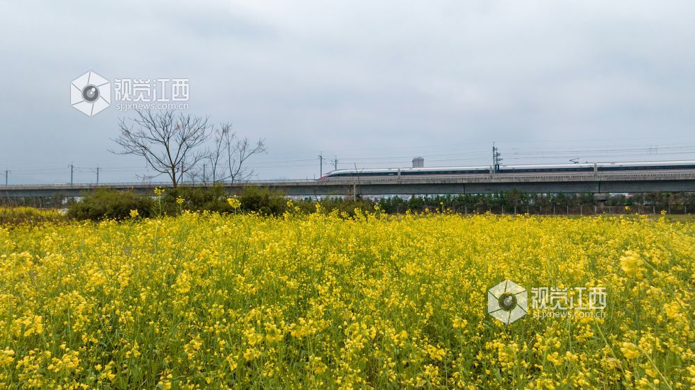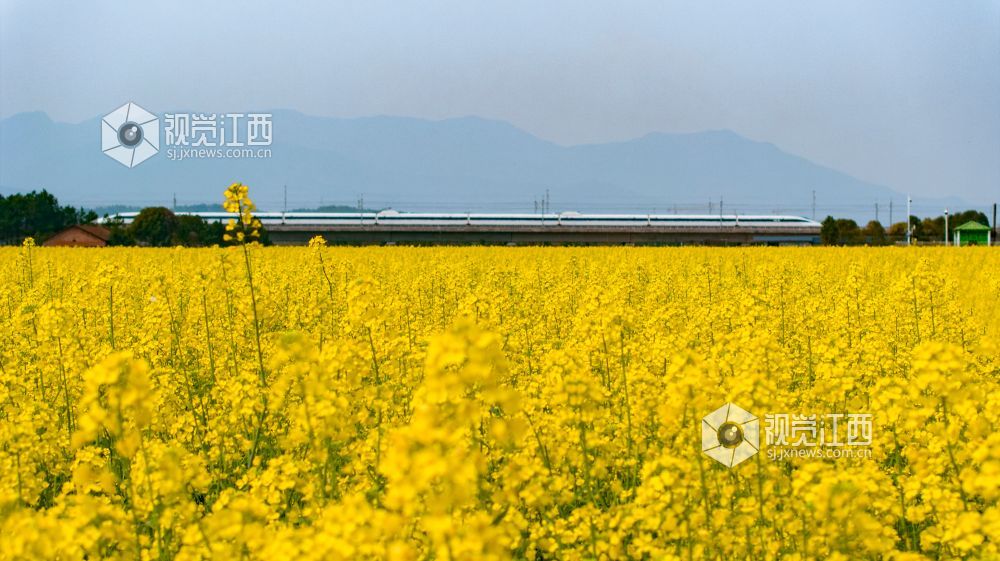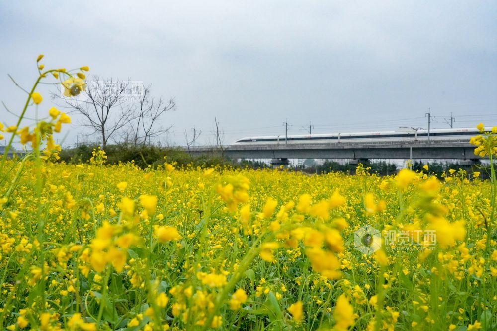 近日,江西省吉安市峡江县水边镇的油菜花竞相开放,金黄色的花海装点着向昌赣高铁沿线,成片的花海随着微风轻轻翻动,在阳光下金光闪闪,高铁来回穿梭于盛开的油菜花田,呈现出一幅迷人的金色画卷。