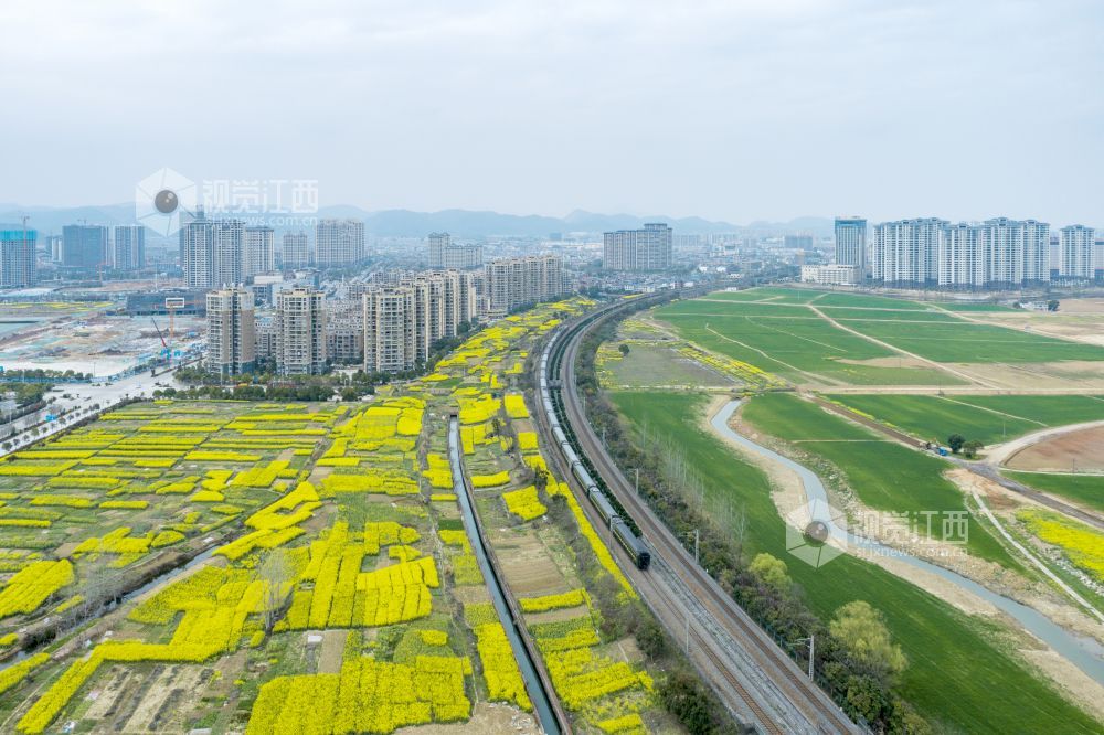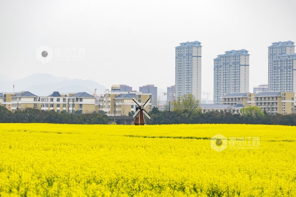 2024年3月16日,江西省瑞昌市油菜花迎来盛花期。金黄的油菜花田错落有致地分布于城市各个角落,与城区建筑、道路、房屋相融,形成一幅幅美丽的生态城市画卷。