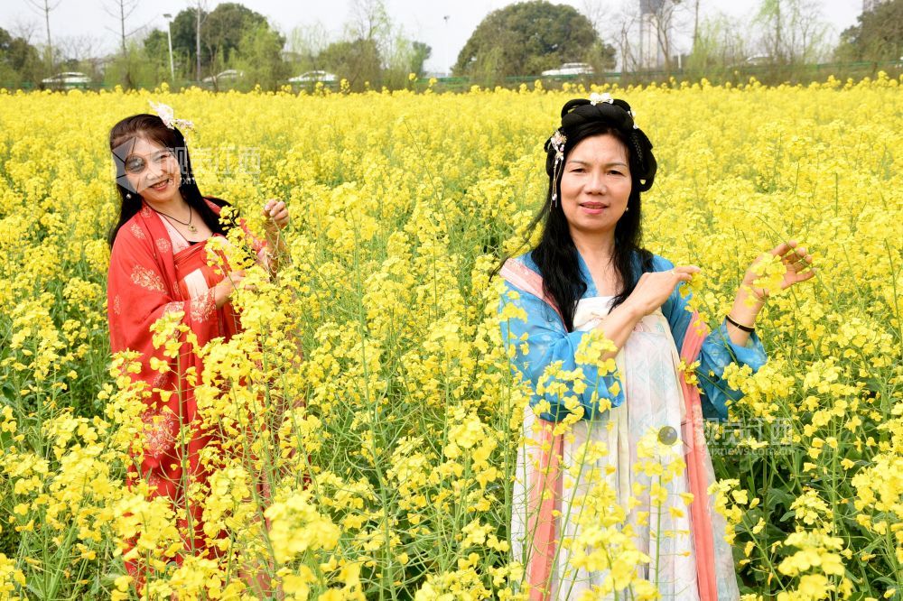 2024年3月17日,江西省抚州市南丰县莱溪乡九联村200亩油菜花竞相开放,吸引游客观光、游览、拍照。