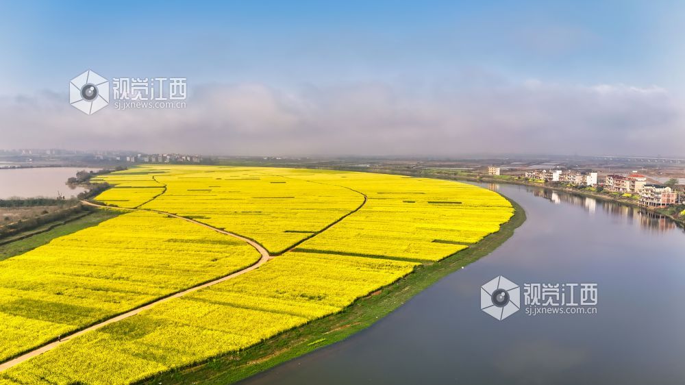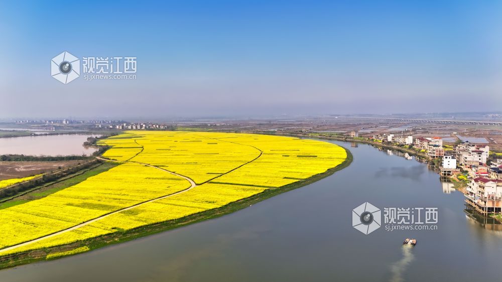 三月的赣鄱的大地,春光明媚,生机勃勃。2024年3月20日,在江西省余干县纵横交错的河网中,万亩的油菜花形成一个半岛,组成了一幅充满江南诗意美丽的画卷。