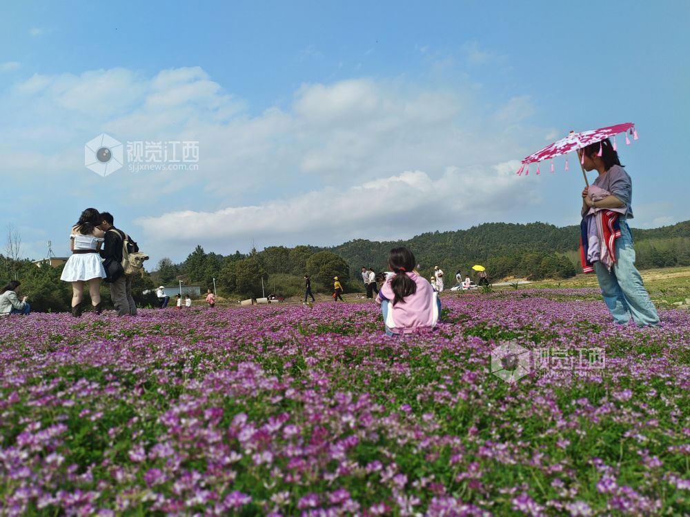 3月24日,随着天气逐渐回暖,紫云英大面积盛开,给江西省永丰县潭城乡白水门水库增添美丽春色,迎来了观赏的好时节。
