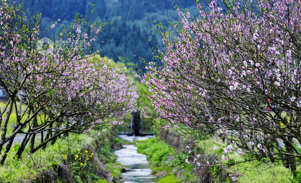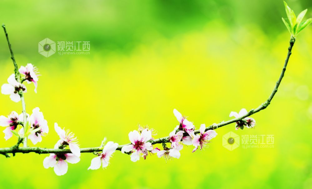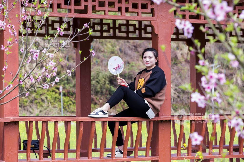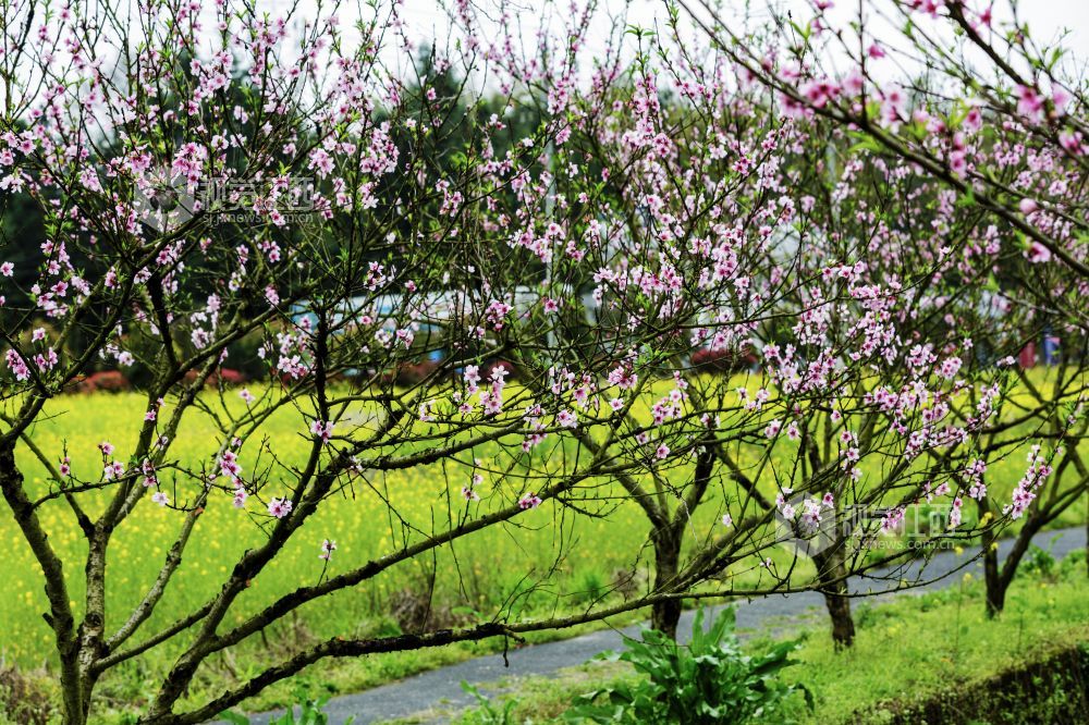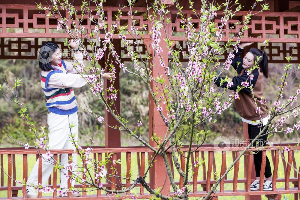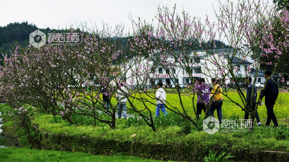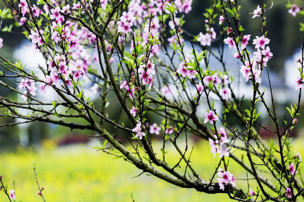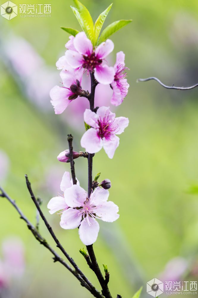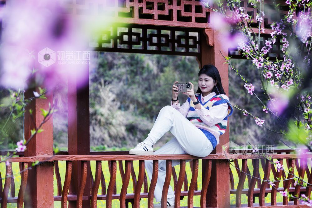 3月23日,在江西新余渝水区良山镇鹊桥村,暖暖的春风,吹开了村里朵朵桃花。鹊桥村的桃花一团团、一簇簇,粉红娇艳,如烟似霞,吸引了众多市民和游客前来踏青赏花。