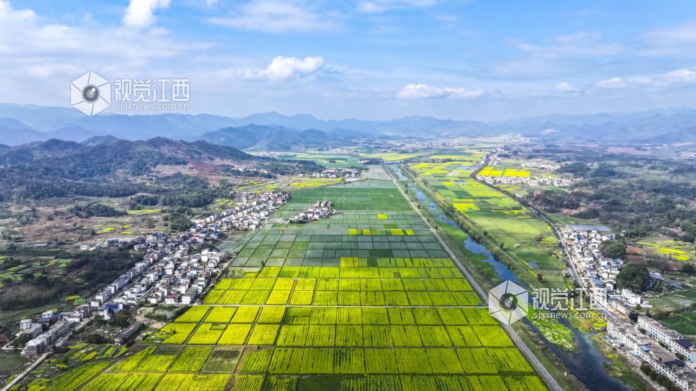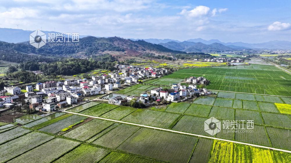 2024年3月26日,俯瞰江西省瑞昌市范镇,阡陌纵横的农田、层峦耸翠的青山及错落有致的民居等交相辉映,构成一幅美丽的春日田园画卷。