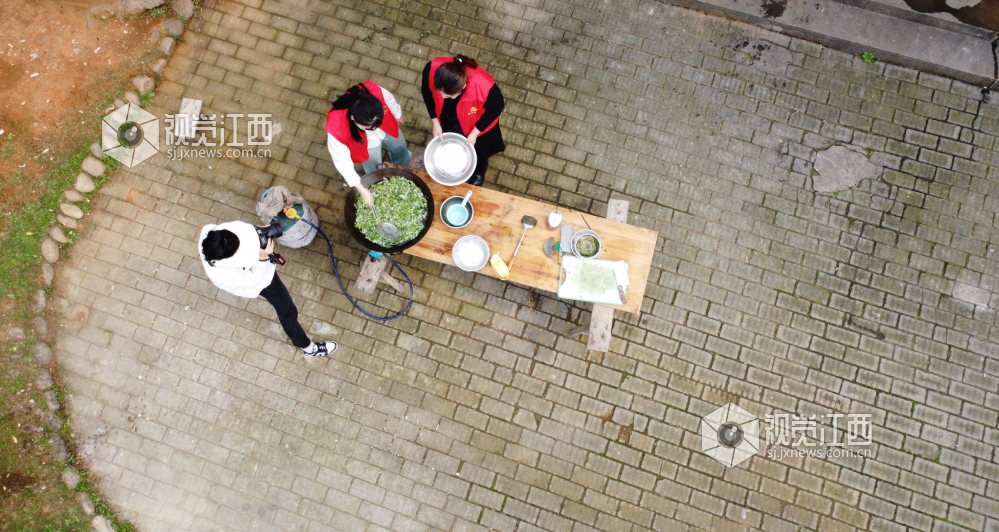 3月27日,江西省余干县玉亭镇锞岭村村民在制作“清明果”。