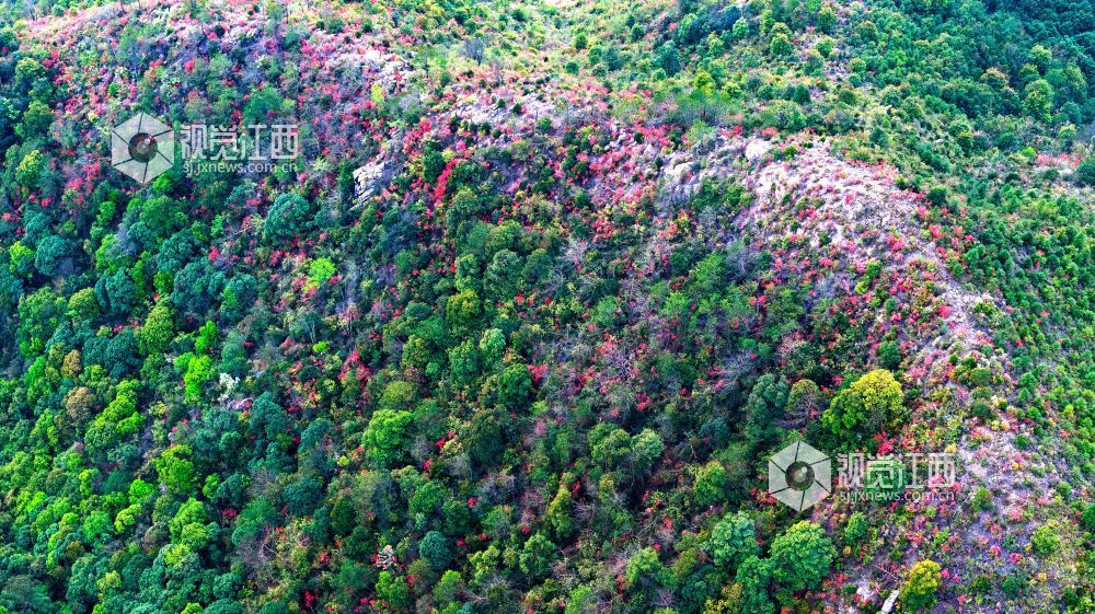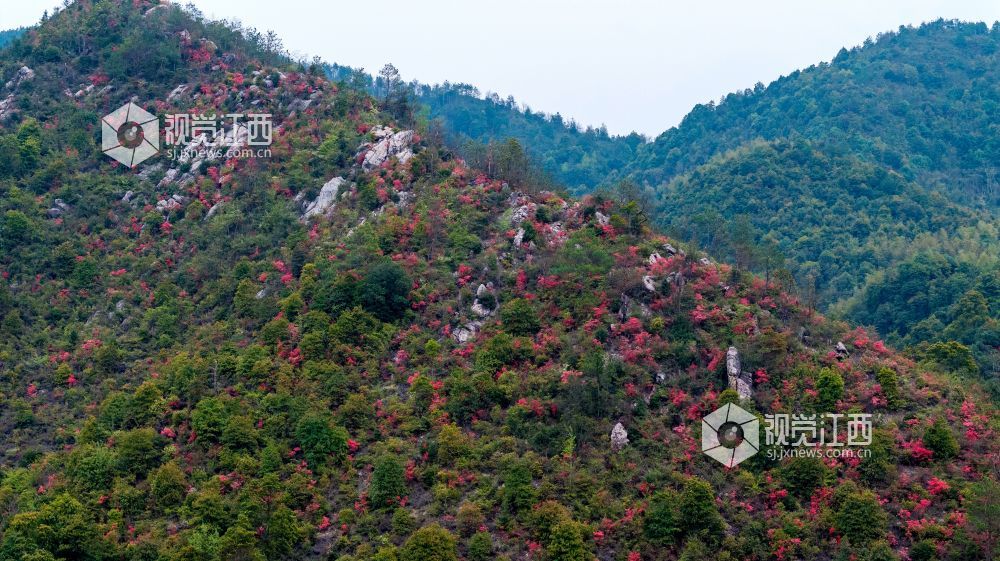 2024年3月27日,江西省吉安市吉水县螺田镇盘岭坑,漫山遍野的映山红花开正艳,构成一幅绚丽的山乡春日画卷。