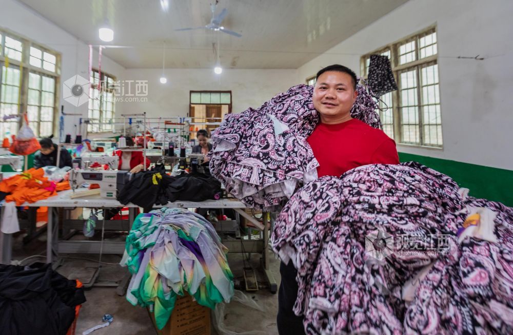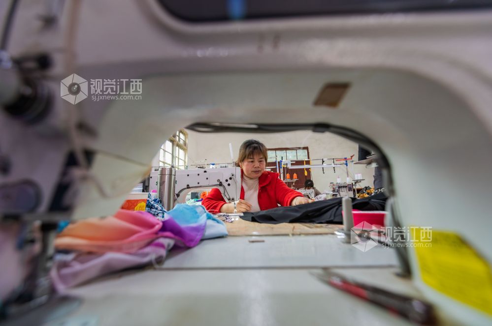 2024年3月27日,在江西省永新县曲白乡曲江村一小微企业生产车间内,工人们正忙着赶制服装产品订单。近年来,江西省永新县曲白乡将小微企业生产车间设在群众家门口,帮助村民实现家门口就业,促进农民增收,助力乡村振兴。