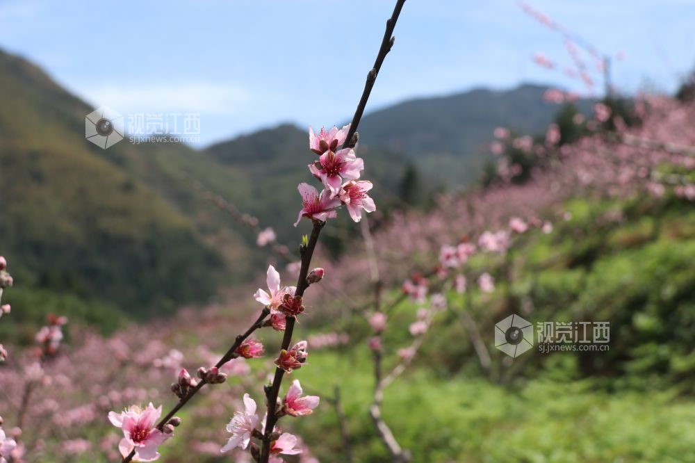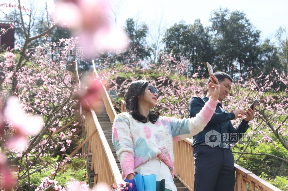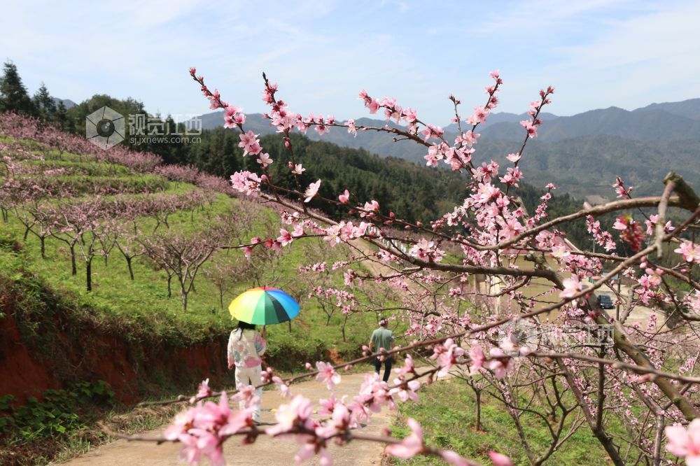 3月29日,江西省吉安市永丰县上溪乡礼坊畲族村畲桃园,绵延成片桃花红,漫山遍野披红妆,游人漫步其中,人面桃花相映红,构成一幅“人在画中、画在景中”的山乡春日画卷。