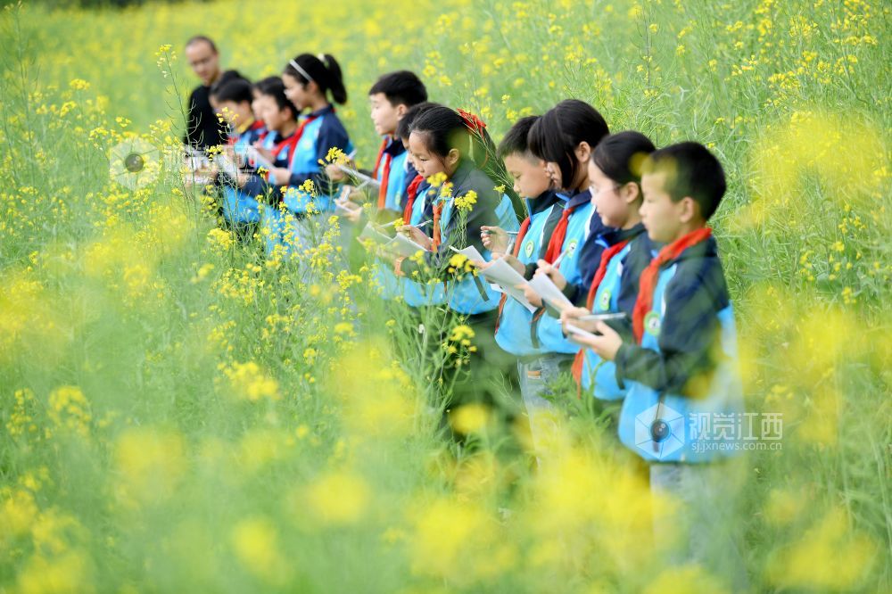 据了解,这是江西省婺源县太白镇中心小学在我国传统节日清明节即将到来之际,组织学生来到当地农家油菜田,开展的一次以“感悟清明 笔绘田园”为主题的乡村田园课堂笔绘活动,同学们借熟背的清明古诗词、书写的乡村田园风光的文章,来描绘自己家乡春暖花开的美丽景色,从而达到亲近自然、寓教于乐、寓教于学的目的,活动深受家长们的欢迎。