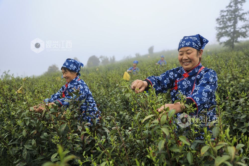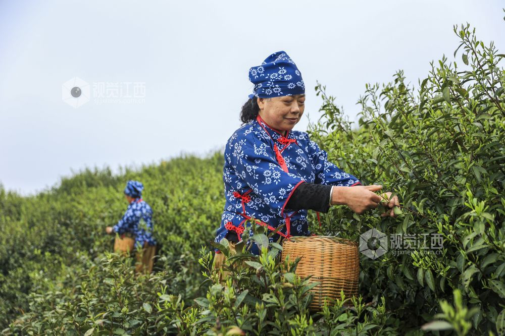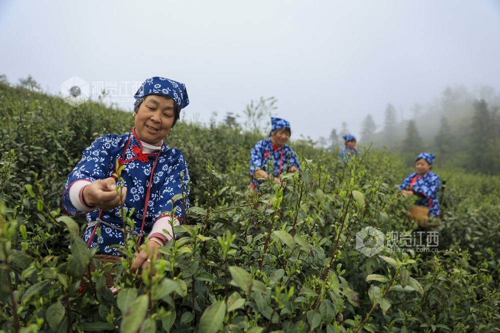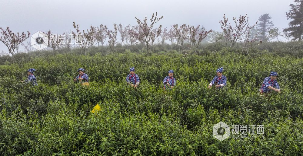 2024年4月3日,江西省瑞昌市青山林场千亩高山有机茶园内,采茶工人们正在采摘春茶。时下正值春茶采收期,当地茶农们抢抓农时采茶、制茶,供应市场需求。