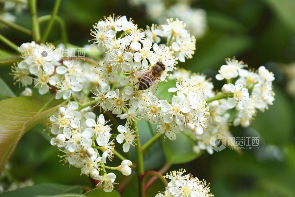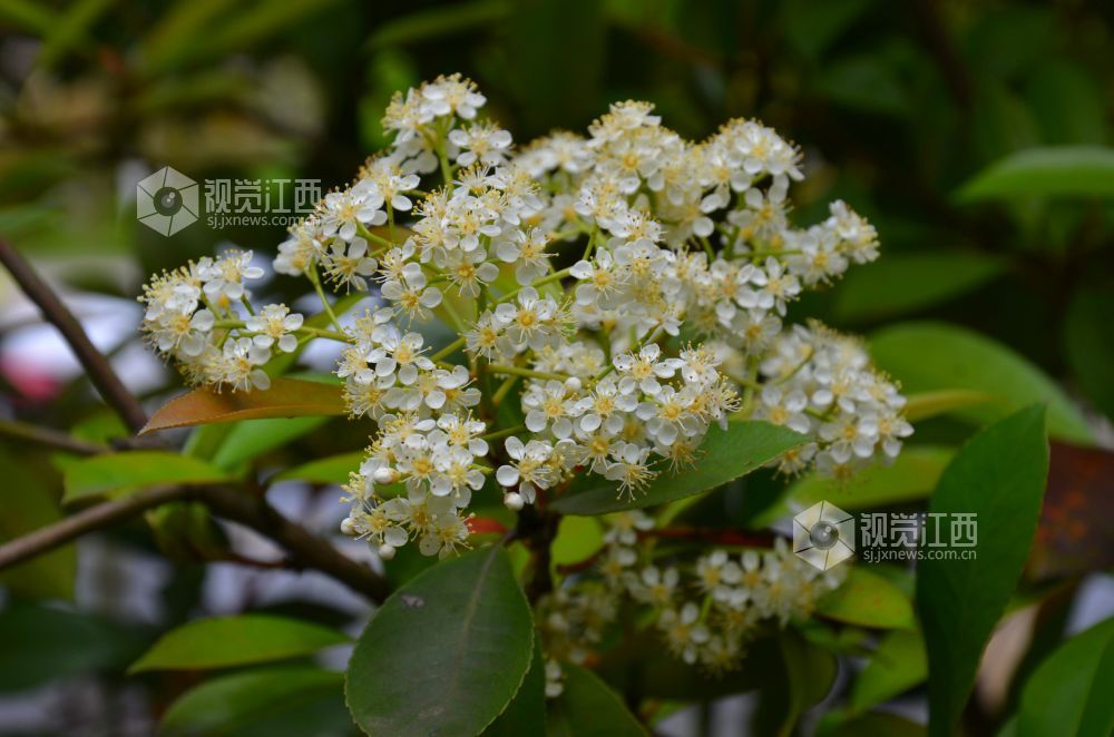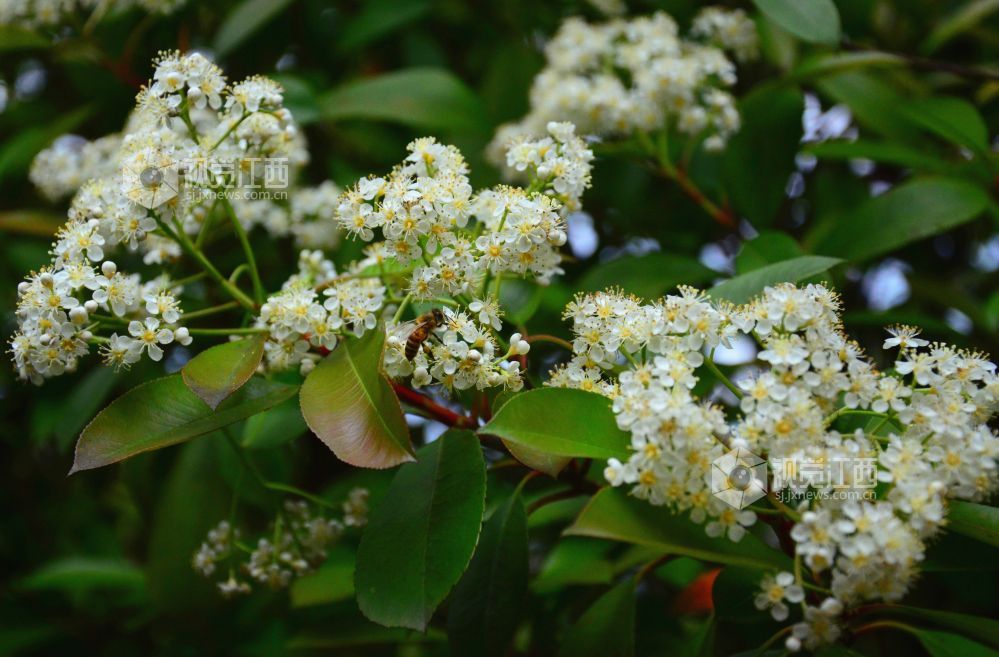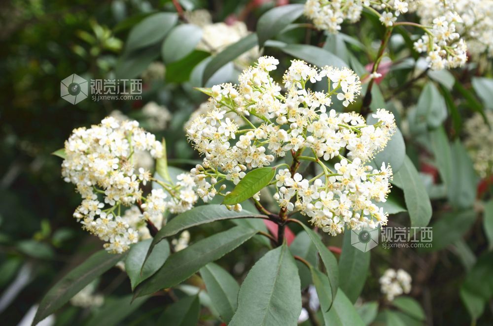2024年4月9日,江西省永新县滨江路两边的石楠开花了。雪白的花瓣挂满了枝头,一朵朵聚成花团,精美细致,在阳光和绿叶的映衬下显得十分素雅好看,给城市增添了一道别样的风景。