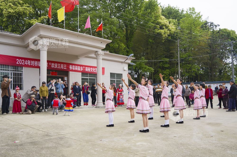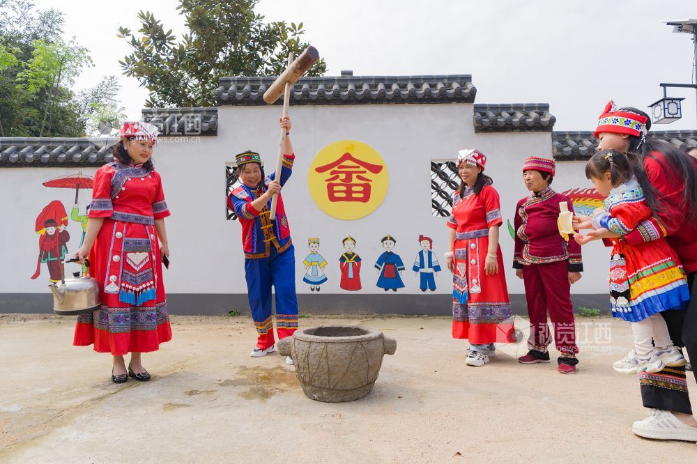 芳菲美景惹人醉,畲乡含笑迎宾朋。4月11日(农历三月初三),江西省金溪县唯一的少数民族村——对桥镇兰家村举行以“欢庆三月三?春意闹畲乡”为主题的民俗文化活动,当地畲族村民身着特色民族服饰,载歌载舞,喜迎八方来客,并让来客通过体验畲族民俗风情。