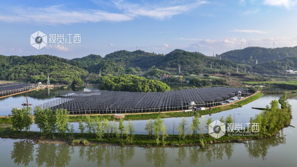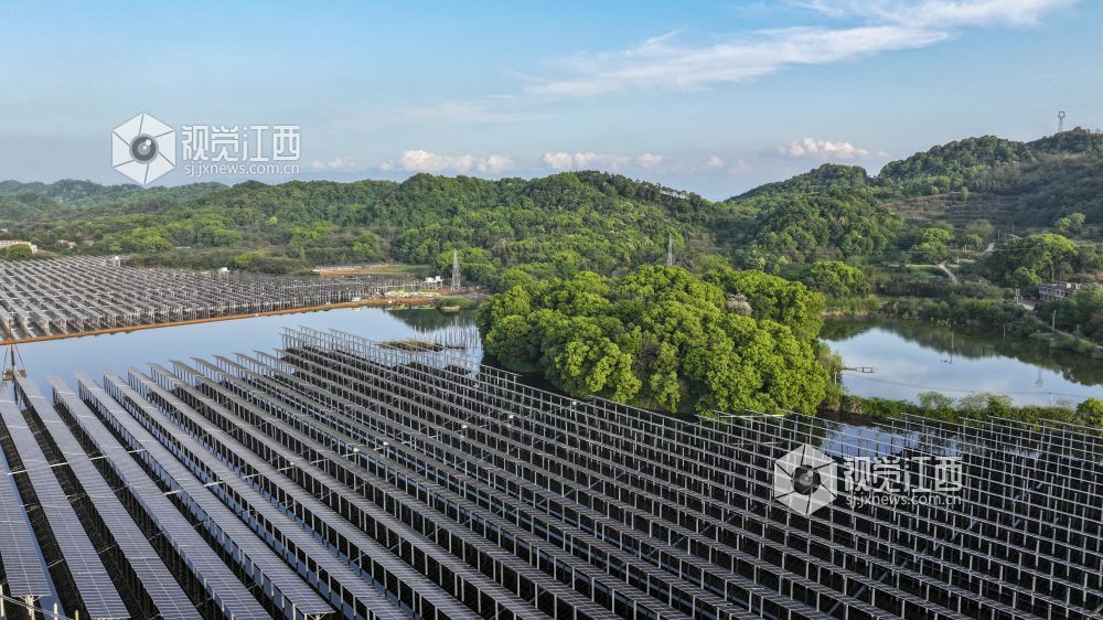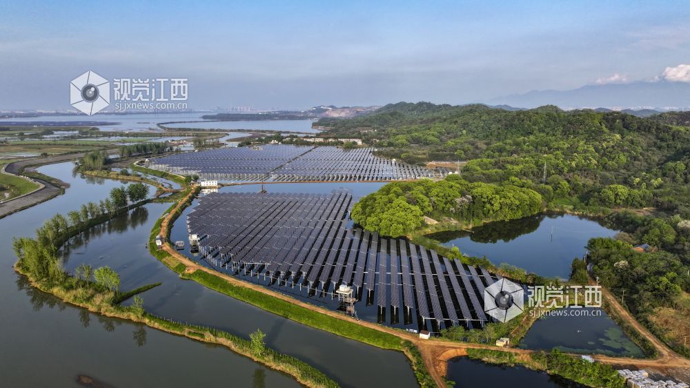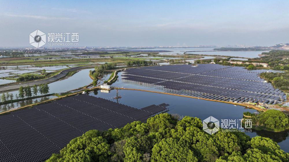 近年来,九江市柴桑区因地制宜实施“渔光互补”光伏电站项目,形成了“水上能发电、水下能养鱼”的生态美景。