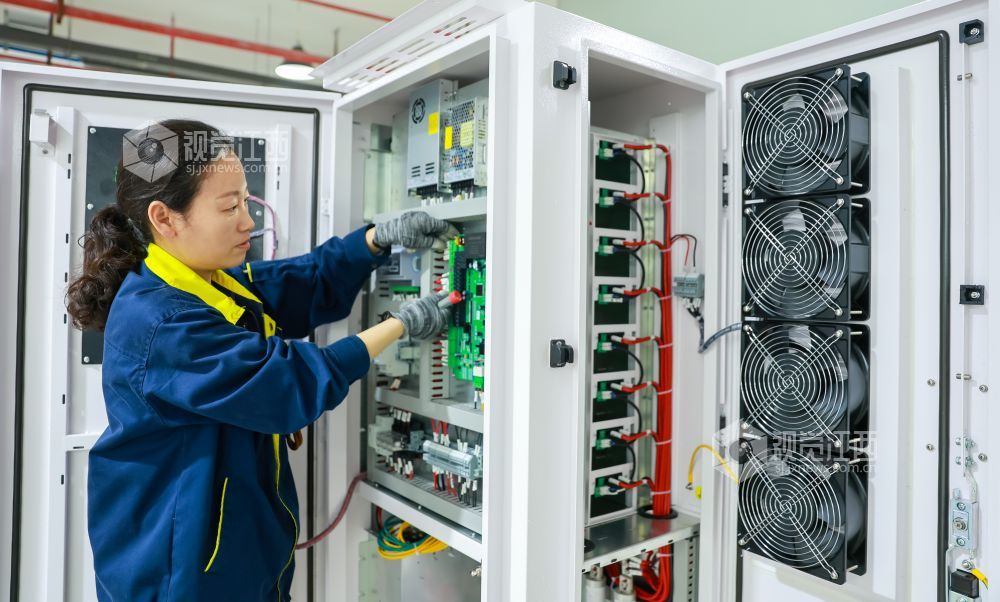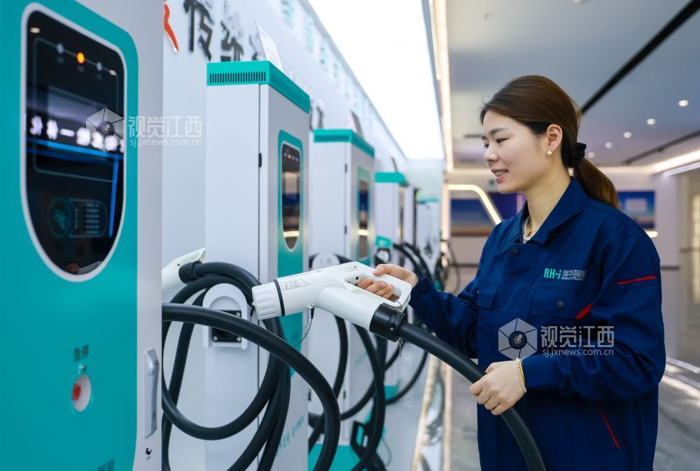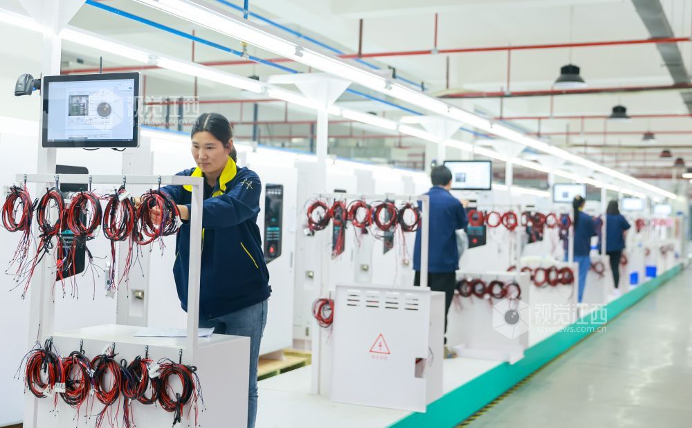 2024年4月17日,江西省瑞昌经开区智造小镇一家智能科技有限公司生产车间内,工人正在赶制新能源汽车智能无线充电桩。