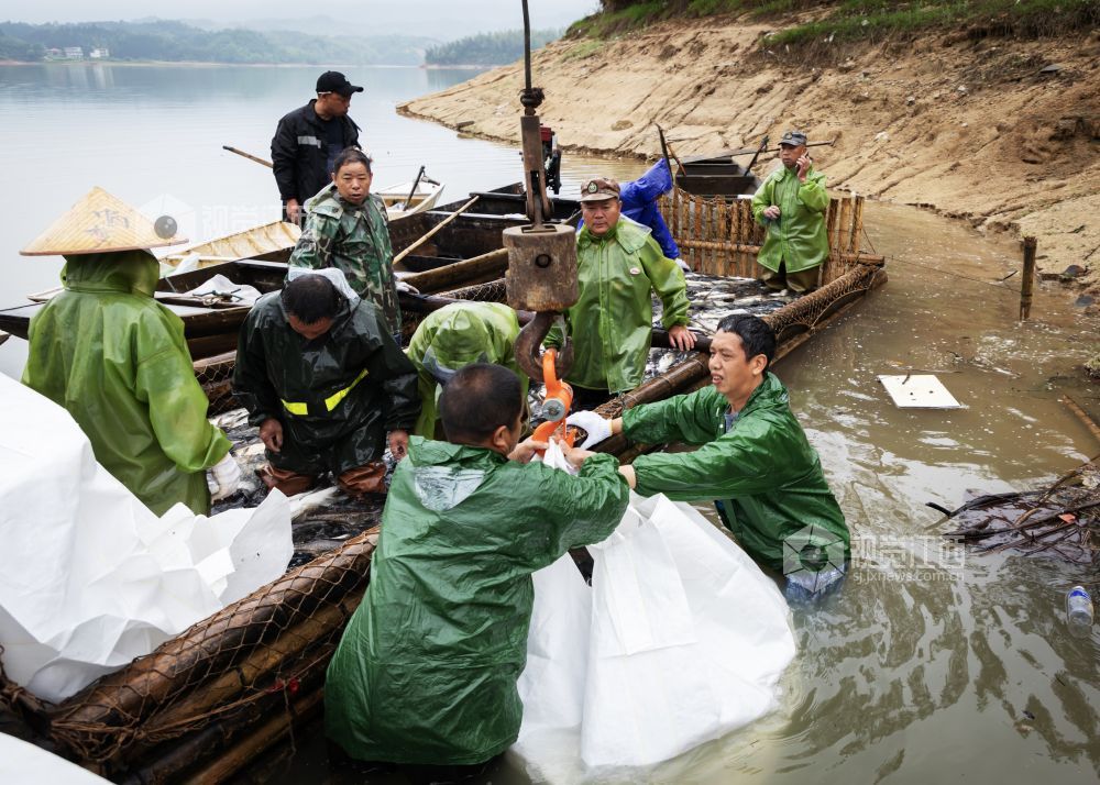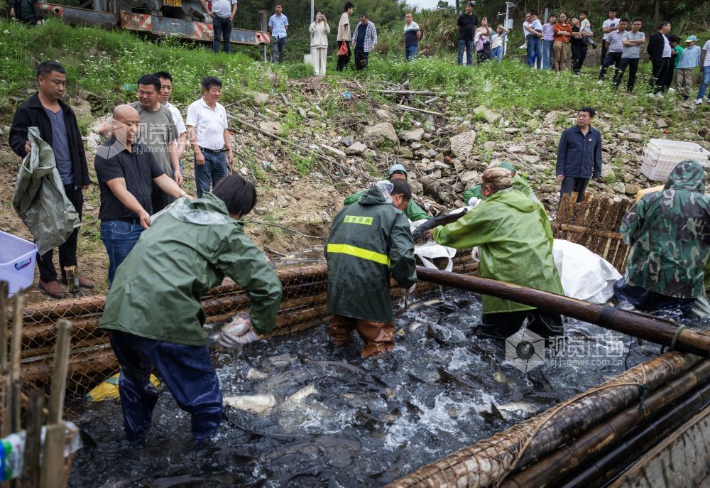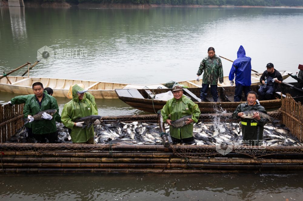 新坊镇路口村鱼塘承包大户邹波介绍:“这是里睦水库今年的第一网,捕获共3302公斤,鱼王重达18斤,捕捞期结束后,预计出鱼量超100000公斤。里睦水库水质好,鱼品质也很好,上岸鱼不愁没销路。”