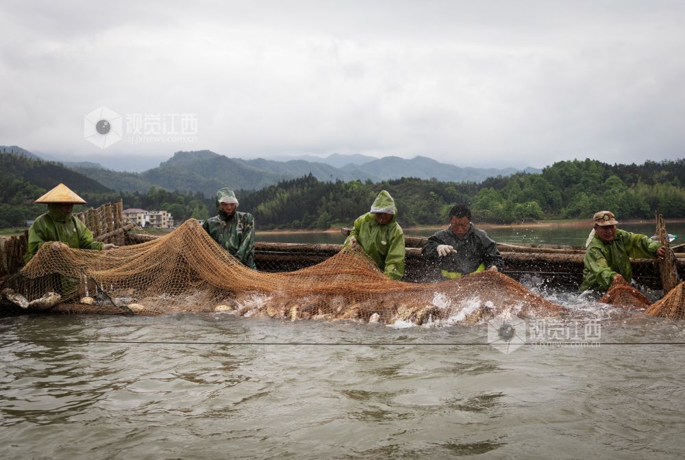 2024年4月20日清晨,江西省宜春市袁州区新坊镇里睦水库呈现出一派“鱼跃人欢”的好“丰”景。随着捕捞人员缓缓收网,一条条肥美的生态有机鱼争相跳出水面,溅起层层浪花,没几分钟,鱼网里的鱼便纷纷跃动,腾空而起。