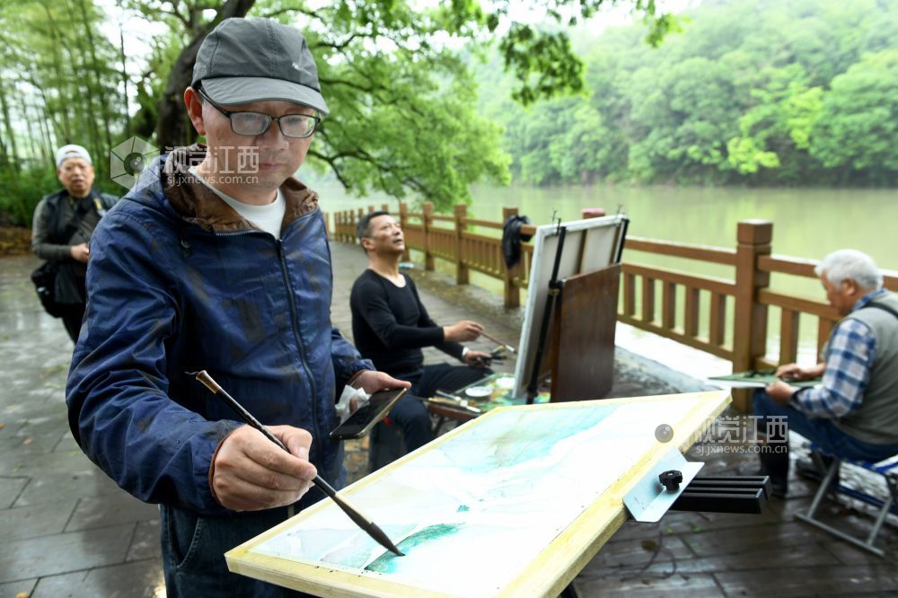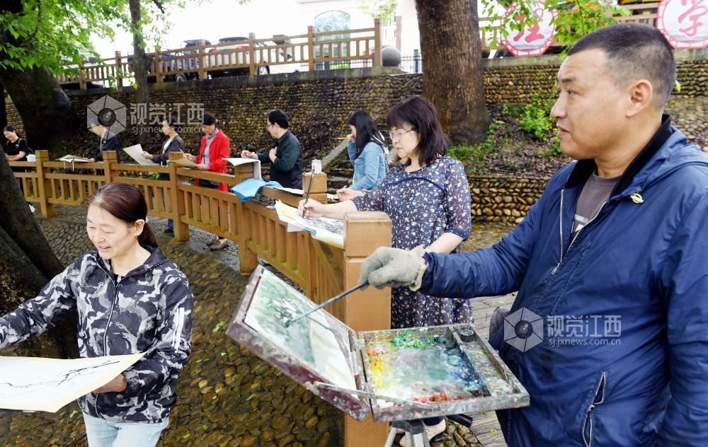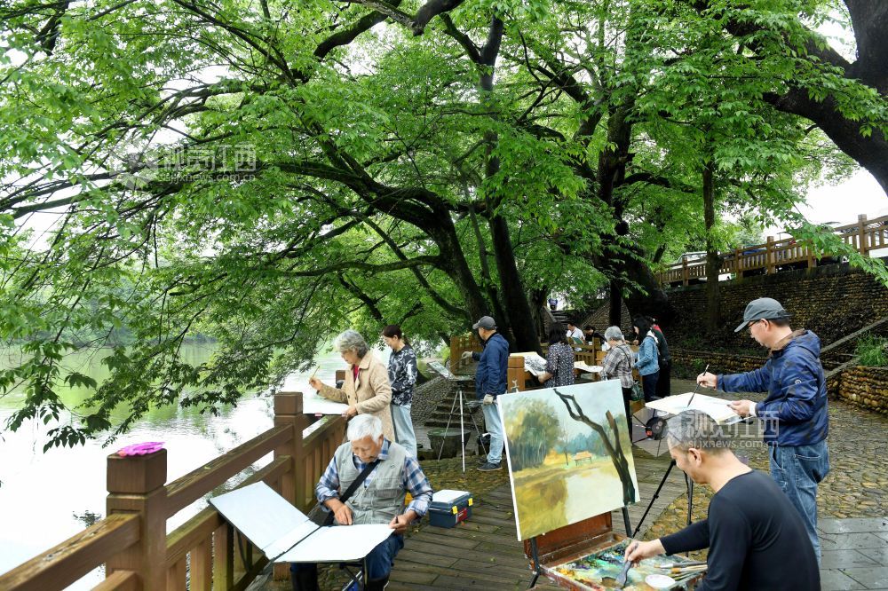2024年4月21日,江西省德兴市美术爱好者正在该市新岗山镇新建村现场写生。据了解,新建村原名柳湖村又名十都,是有着一千多年的古村落,村里依山傍水,古树葱郁,民风朴实,文化内涵丰富,以其典型江南水乡文化特色,吸引了众多美术摄影爱好者和游客慕名前来创作采风。