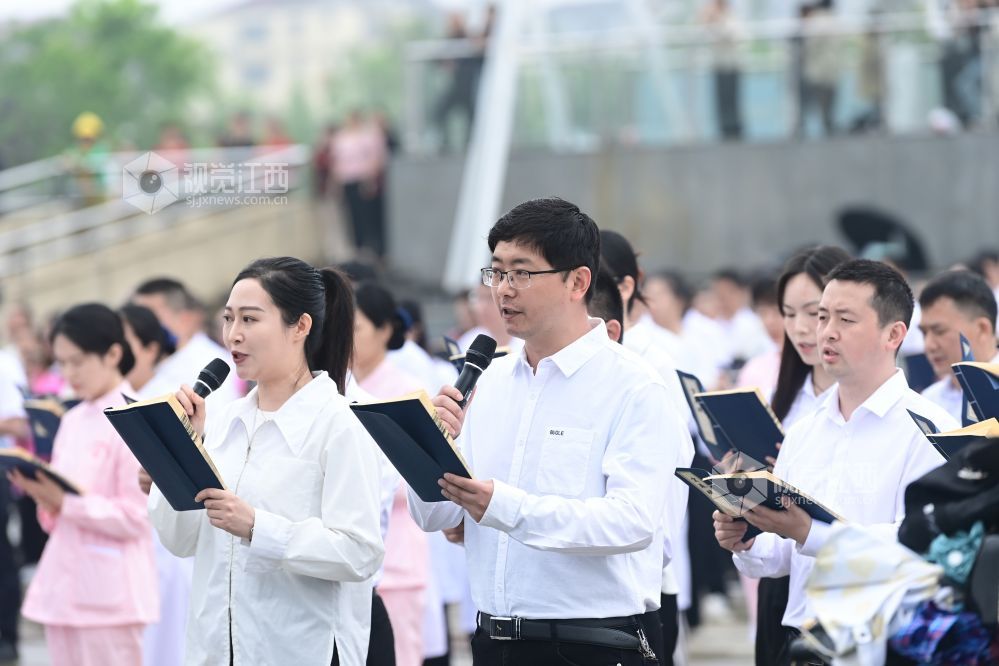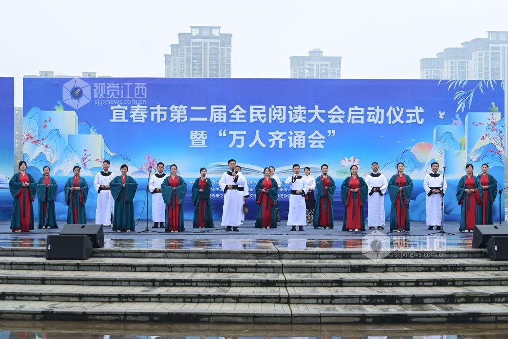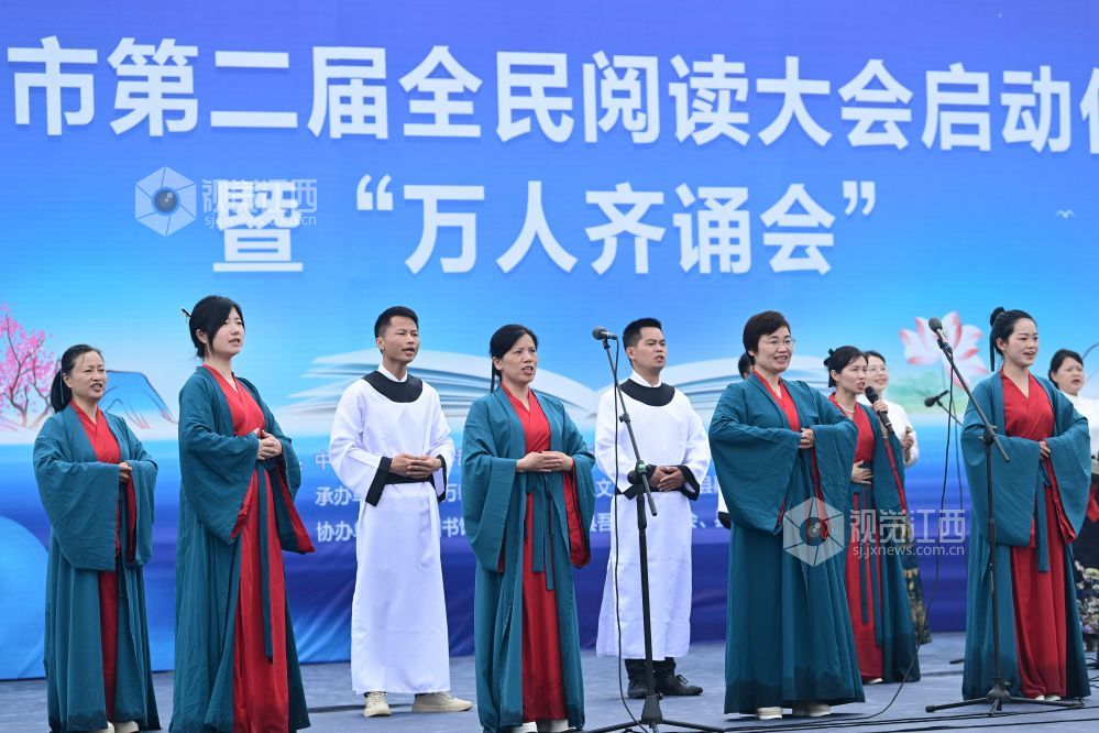 2024年4月23日,江西省宜春市第二届全民阅读大会启动仪式暨万人齐诵会在万载县龙湖文化广场举行,来自该县各行各业代表的八个方阵人员齐诵“少年中国说”“有一个地方叫万载”“宜春赋”等相关诗句。