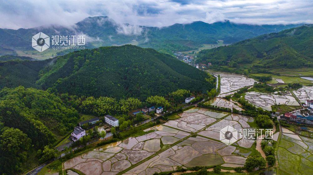 4月19日,在江西省吉安市峡江县桐林乡庙口村,广袤田园雨后云雾缭绕,农田阡陌纵横,蓄满春水,平整如镜,与远山、村庄相互映衬,构成一幅美丽的山水田园画卷。近年来,该乡坚持生态优先、绿色发展,以生态文明建设为主线,大力发展烟叶、香菇等特色农业产业,走出一条生态好、产业兴、家园美的乡村振兴之路。